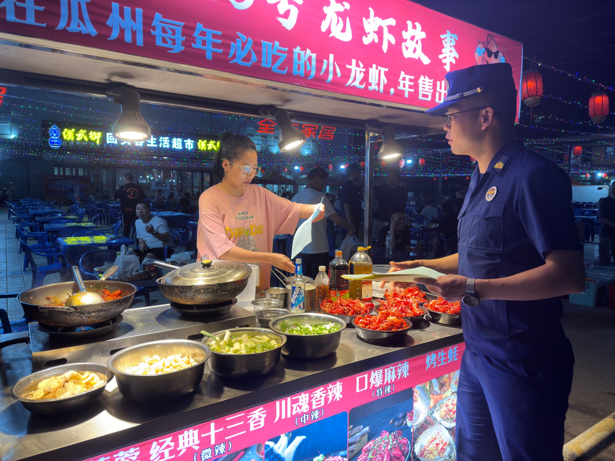“大娘,这是咱们的《消防安全宣传手册》,平时多看看,多学学。”“大哥,咱这用气可得注意,煤气罐、天然气、油等易燃易爆物品要妥善保存,不可随意乱放,定期进行检查……”消防员一边发放宣传资料,一边为摊主讲解消防知识,提醒各小吃摊主电气线路要经常进行检查,不可私拉乱接电气线路,发现有老化线路应该及时更换。