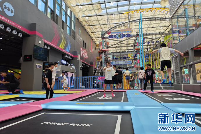 市民体验蹦床项目。新华网发(童张伟 摄)
