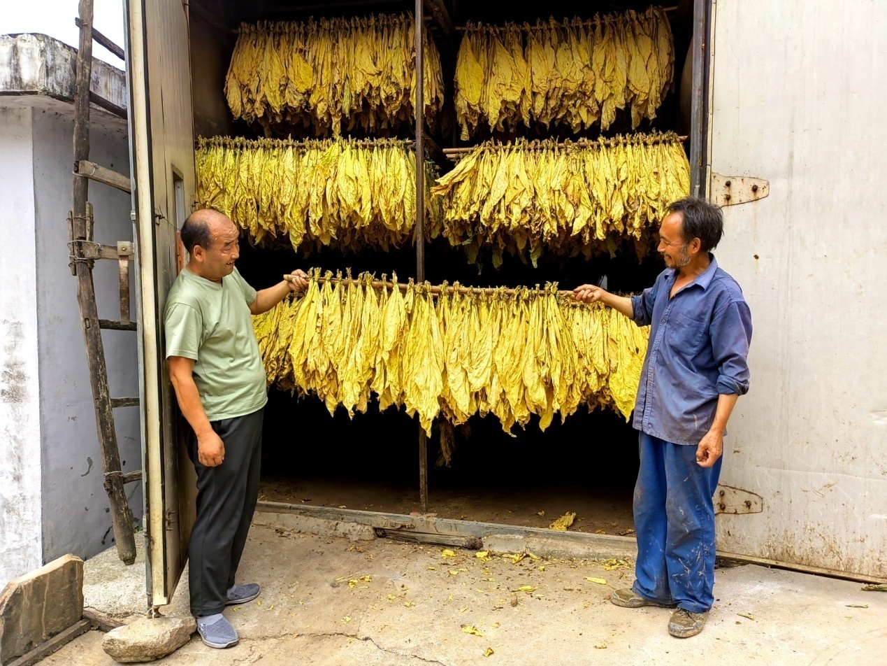 烟农侯林烤出了今年的第一炉“黄金叶”(甘肃省陇南市成县烟草专卖局供图)