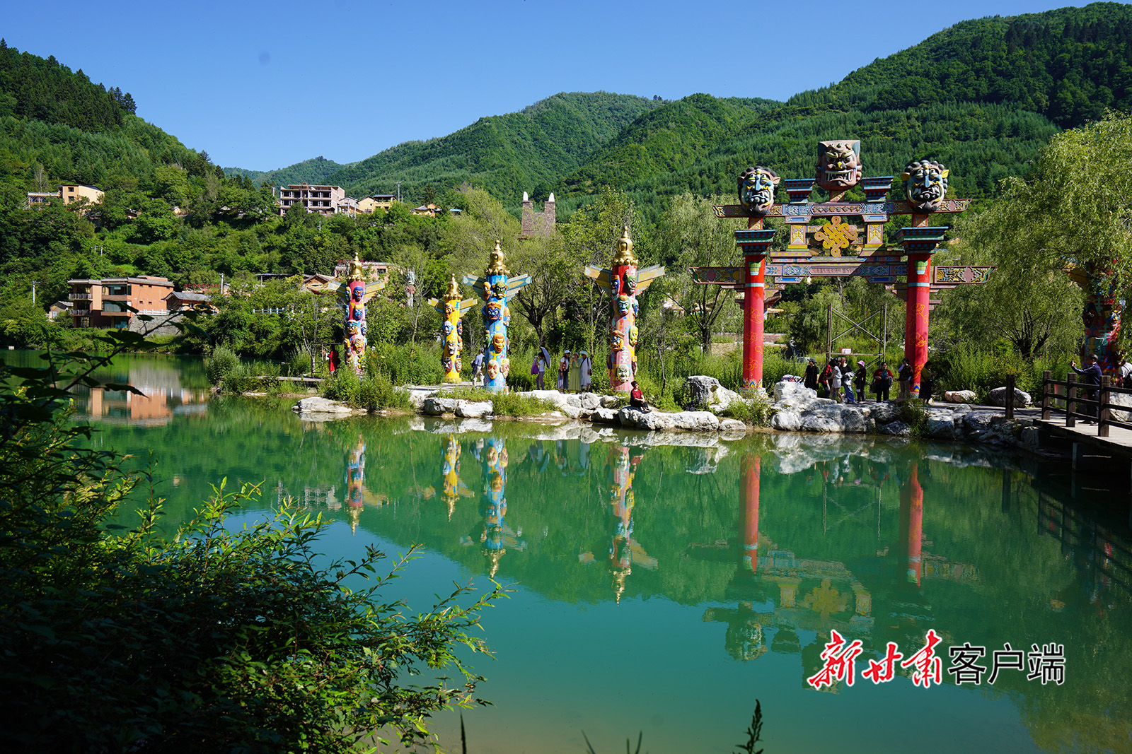 7月17日游客在陇南市宕昌县官鹅沟鹿仁民俗文化村游览。鹿仁村坐落在官鹅沟国家森林公园内,自然风光秀美,藏羌风情独特。近年来,鹿仁村大力发展以旅游为主的富民产业,成为远近闻名的乡村旅游示范村。