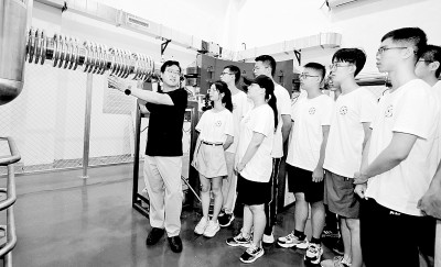 2022年7月26日,中国原子能科学研究院研究员在瑞昌核物理应用研究院向西部大学生们讲解我国自主研发的AMS加速器。魏东升摄/光明图片