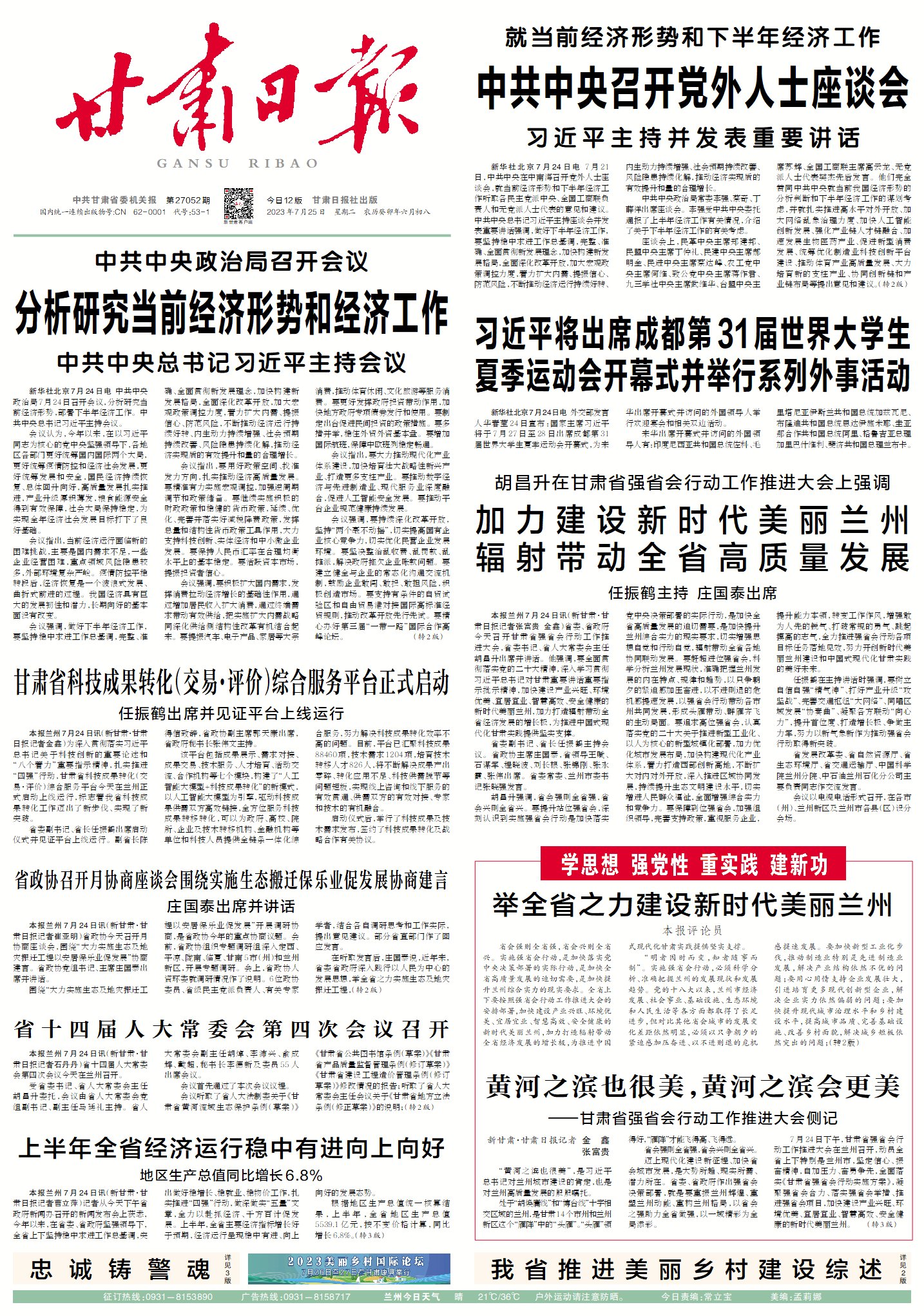 万里长风起云端,头雁奋飞群雁随。让我们群策群力,提升站位强省会、赶超进位强省会、追求高位强省会、保障到位强省会,全力推动强省会行动深入实施,形成“头雁”带动、“群雁”齐飞的生动局面,开创新时代美丽兰州建设和中国式现代化甘肃实践的美好未来!