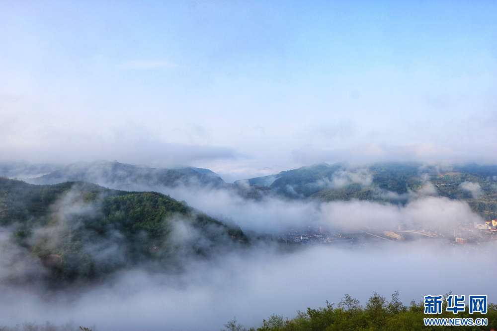 近日,甘肃省陇南市两当县上空云雾缭绕、烟波浩渺,县城、山峰在雾海中若隐若现,阳光从云雾间掠过,勾勒出一幅幅如梦如幻的美丽画卷。新华网发(杨晓 摄)