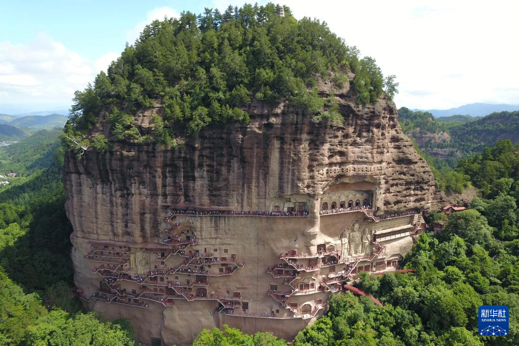 进入暑期,地处甘肃省天水市麦积区的麦积山石窟迎来旅游高峰。为保障游客与文物安全,麦积山石窟艺术研究所优化参观路线,从7月29日起至8月25日间开启路线陡峭的应急1号线和路线平缓的应急2号线两条参观线路供游客选择,以此提升游客体验。麦积山石窟是“中国四大石窟”之一,因其形似麦垛而得名,也是世界文化遗产“丝绸之路:长安-天山廊道的路网”的遗产点之一。