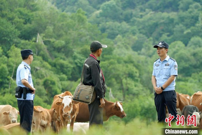 图为天水市张家川县马鹿派出所所长马明(右一)和同事在林区巡逻。(资料图)张家川县公安局供图