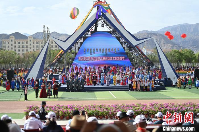 8月8日,甘肃省酒泉市肃北蒙古族自治县第七届那达慕文化旅游节在该县县庆广场开幕。中新社记者 李亚龙 摄
