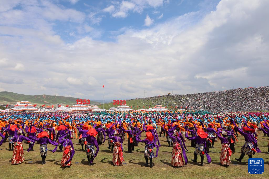 这是8月10日拍摄的甘南藏族自治州成立70周年庆祝大会演出现场。新华社记者 马希平 摄