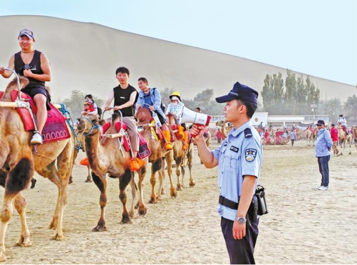 面对随之而来的社会治安防控压力,敦煌公安立足旅游特色,结合夏季治安打击整治行动,精准布警、精细管控、精致服务,时刻践行“民警就是导游,队伍就是风景,管理就是服务,执法就是守护”的敦煌旅游警务理念,用“5A”警务服务“5A”景区。