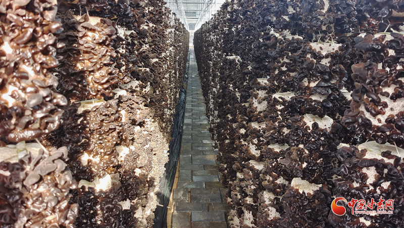 卓尼县纳浪镇食用菌种植示范基地内黑木耳长势正好