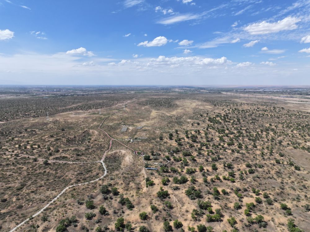 在八步沙林场,梭梭、柠条、花棒等耐旱植物郁郁葱葱。