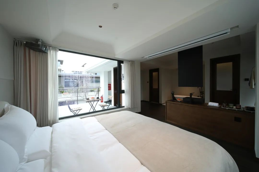 在客房里,不用刻意寻觅,湖景、云霞与草木交织的美景,便自动闯入视野。“每一间房都经过精心设计,确保客人能最大限度地欣赏到自然景观。”这是高鸣贯彻始终的构想。