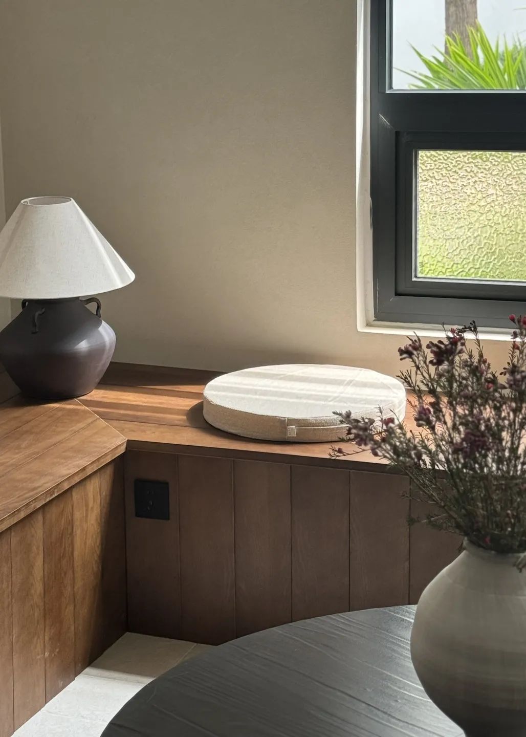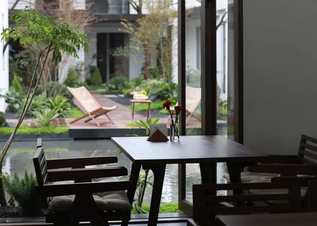 温润肌理的墙面、手工制作的复古地面、蔓延至露台的绿植,模糊了建筑与自然的边界。当光影入室,晨雾、夕照、雨幕皆化作流动的风景。院内的一草一物,经他解读,有了温度。