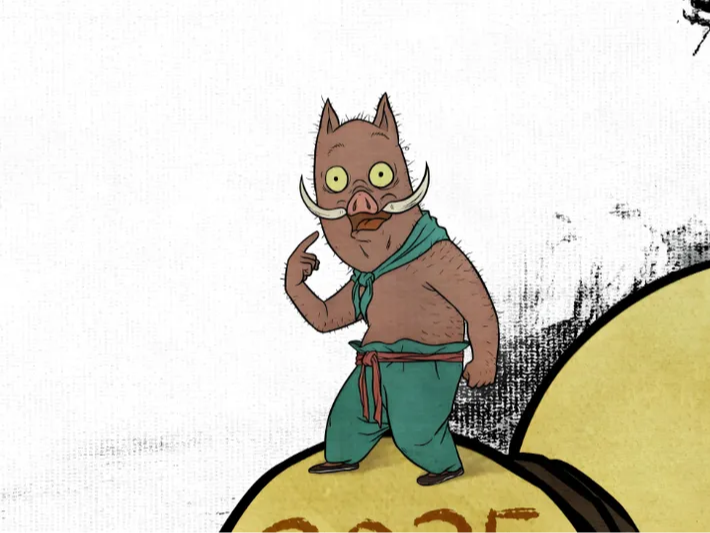 《浪浪山小妖怪》本质上是一部现代寓言,它让传统神话中面目模糊的小妖推向舞台中央,并赋予其鲜明的个性特质。为进入大王洞熬夜擦锅的小猪妖,在保守与冒险间挣扎的蛤蟆精,胆小口吃却要强撑“齐天大圣”人设的猩猩怪......这些荒诞情节犹如哈哈镜,折射出现代社会中存在的职场现象和个体的生存焦虑。