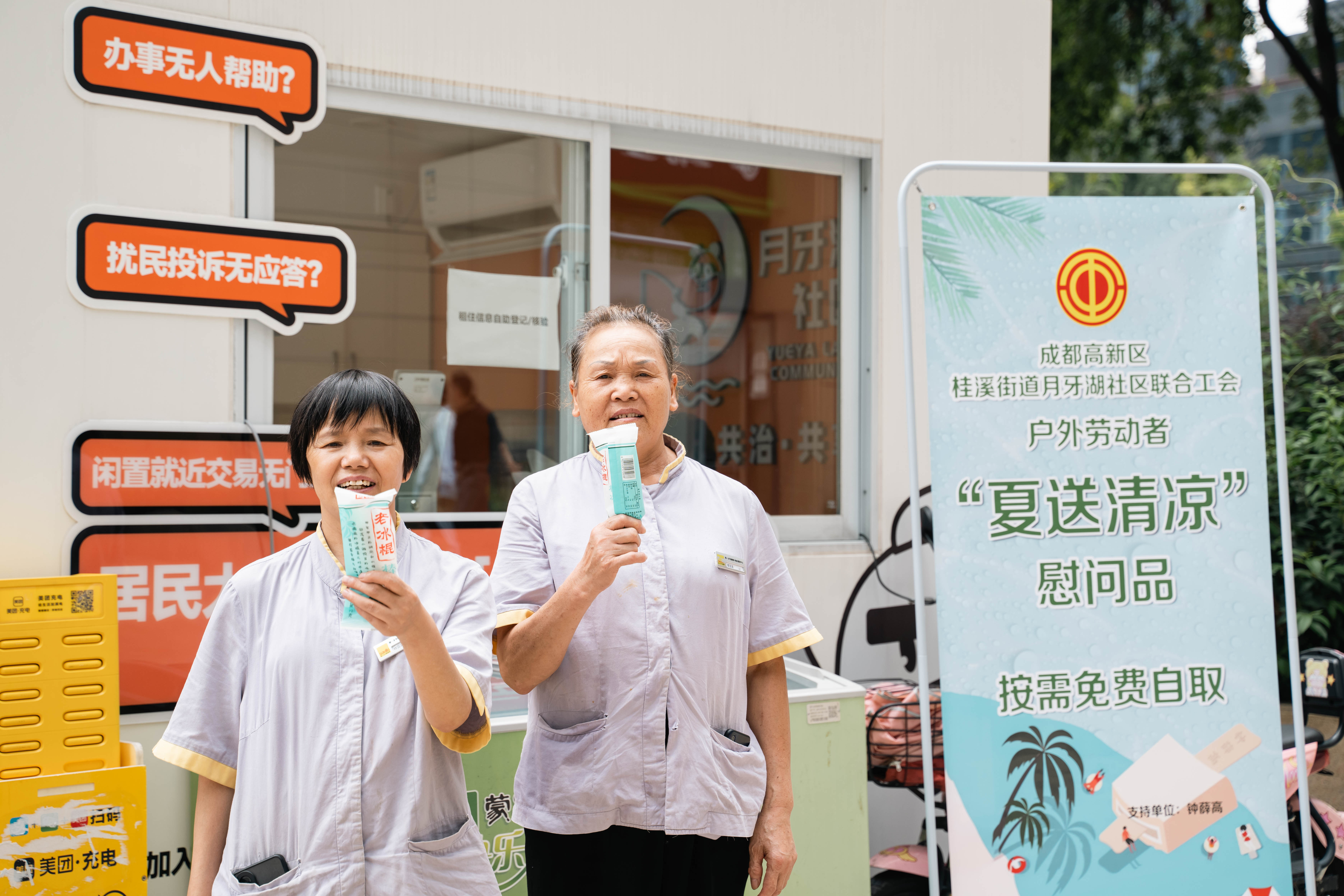 “炎炎夏日,这些一线工作者不惧酷暑,用汗水守护着城市生活的正常运转。我们愿意与成都共同成长,共同为他们搭建一片清凉的港湾。”月牙湖社区联合工会相关负责人说。下一步,工会将持续关注一线户外劳动者身体健康和就业情况,加强社区工会的保障工作,将党和政府的关心关爱真正送到他们手里、送进他们心里。