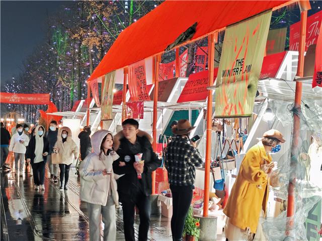在华商中心前的广场上,“双塔下的烟火市集”人潮涌动,鹤鸣茶社的茶香,伴着手上轻摆的盖碗氤氲而上,旁边的一份龙抄手或钟水饺,却呈现出生活的烟火气……在交子公园商圈为市民和游客精心营造的文化生活场景和消费场景中,中国最具活力和幸福感城市的独特魅力一一呈现。