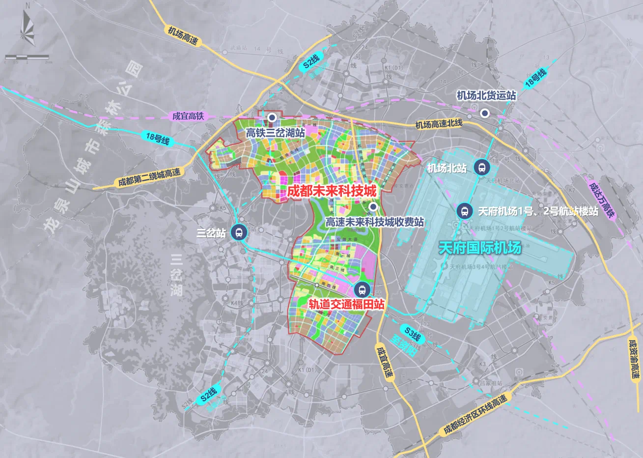 聚焦城市功能提升,成都未来科技城依托地铁18号线福田站,串联国际空港、成都中心城区以及资阳,进而通过TOD开发丰富科教创新、商务办公、酒店会展等功能,加速汇聚高端科创精英和高层次产业人才,打造一座开放、共享、智慧的未来科技城,加快助力成渝地区中部崛起,推进成渝地区双城经济圈建设。