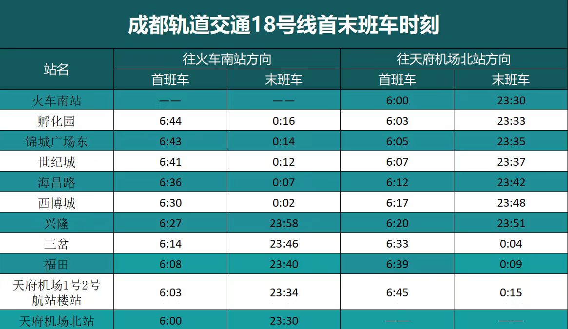 据了解,福田站前往火车南站方向首班车时间为6:08,末班车为23:40,前往天府国际机场方向首班车时间为6:39,末班车时间为0:09。福田站A口外约10米处已设有公交站点,开通运营的东25路公交车,线路起讫点为福田TOD站-科技城北大街站,运营时间为7:00-18:00,市民乘客可根据规划合理安排行程。