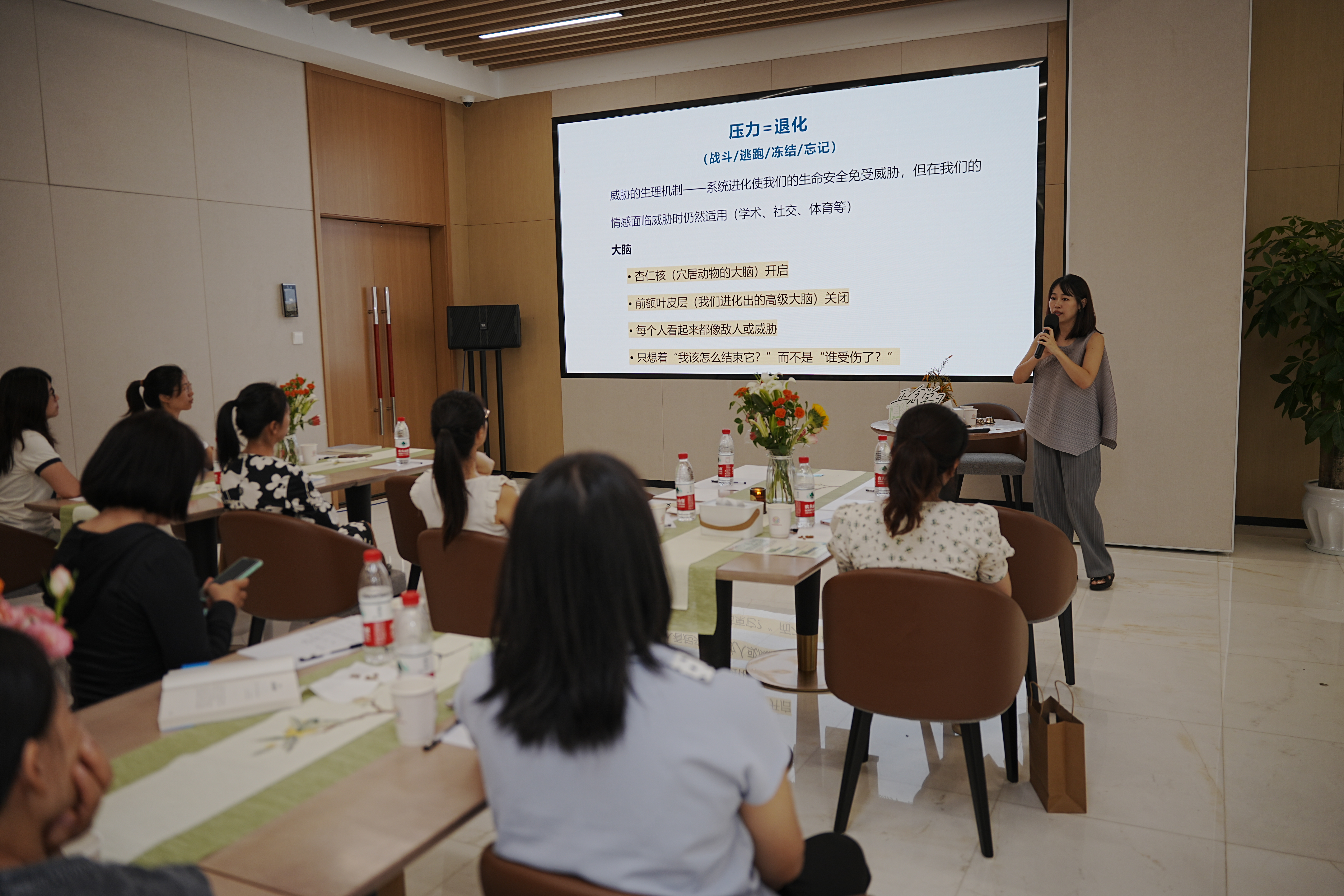 活动中,唐梦为家长们深入浅出地分析了孩子产生不同负面情绪的原因,并引导家长们加深对孩子在情绪失控时出现的行为认知。“孩子的焦虑情绪是因为将事件的后果设想得很严重或者身上任务繁多且缺乏规划”“怯懦情绪的产生则来自于害怕破坏关系、害怕受到伤害”“拖延心理是因为做事过于追求完美、把事情想的太难太复杂,但又缺乏规划能力……”唐梦引导家长们沉浸式体验情绪练习,包括关注当下、对抗压力等等,并为大家推荐了适合亲子互动的游戏。