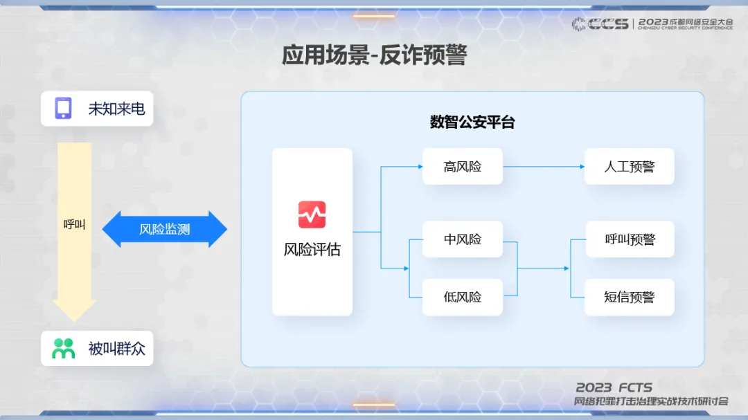 当疑似诈骗电话呼叫时,若被叫方为高风险人群,平台会直接提醒民警进行人工预警,“在这一过程中,可以通过真人电话预警或上门干预;若被叫方为中风险或低风险,则会由智能语音机器人进行预警呼叫,挂机后也会发送短信强调风险。”李良说。