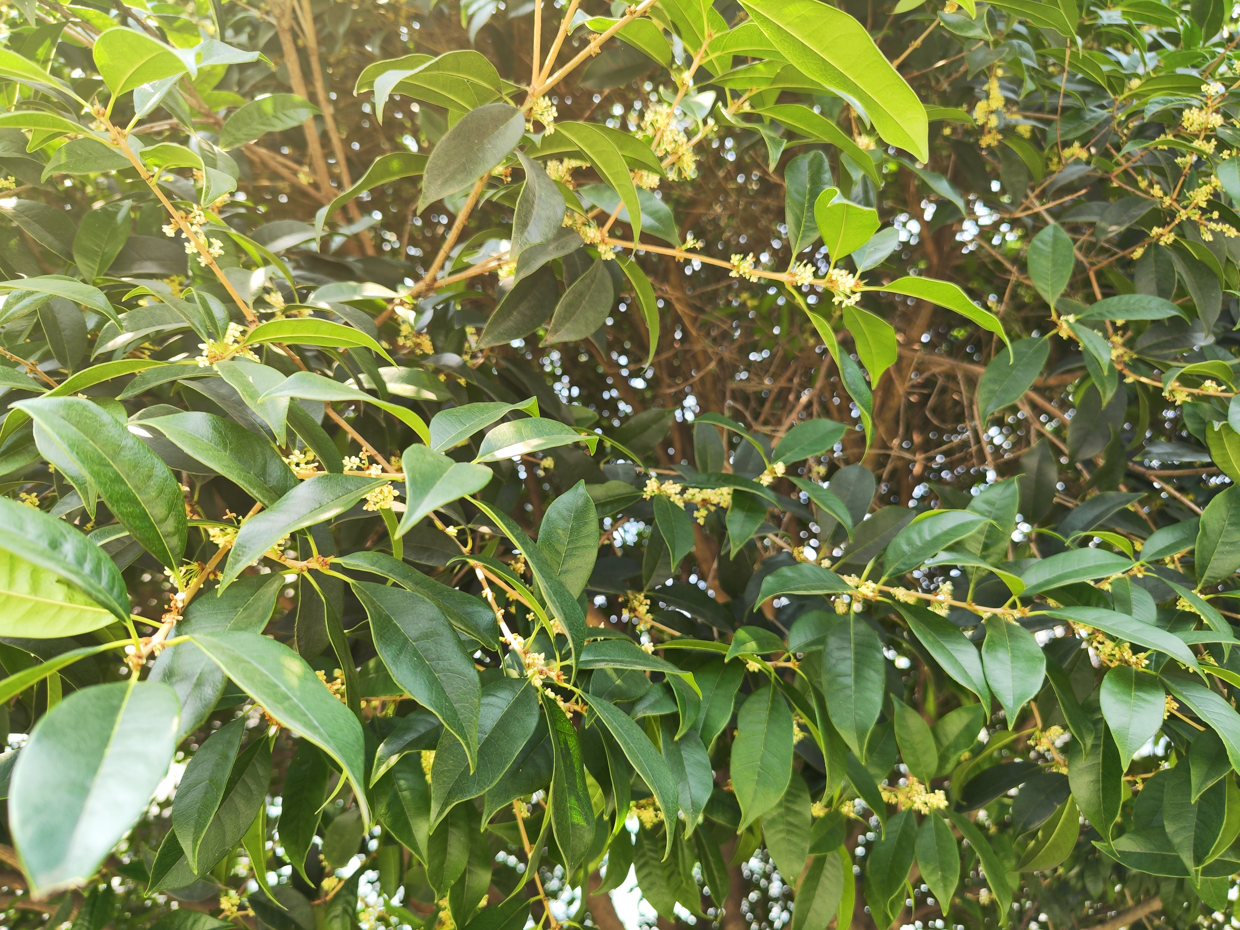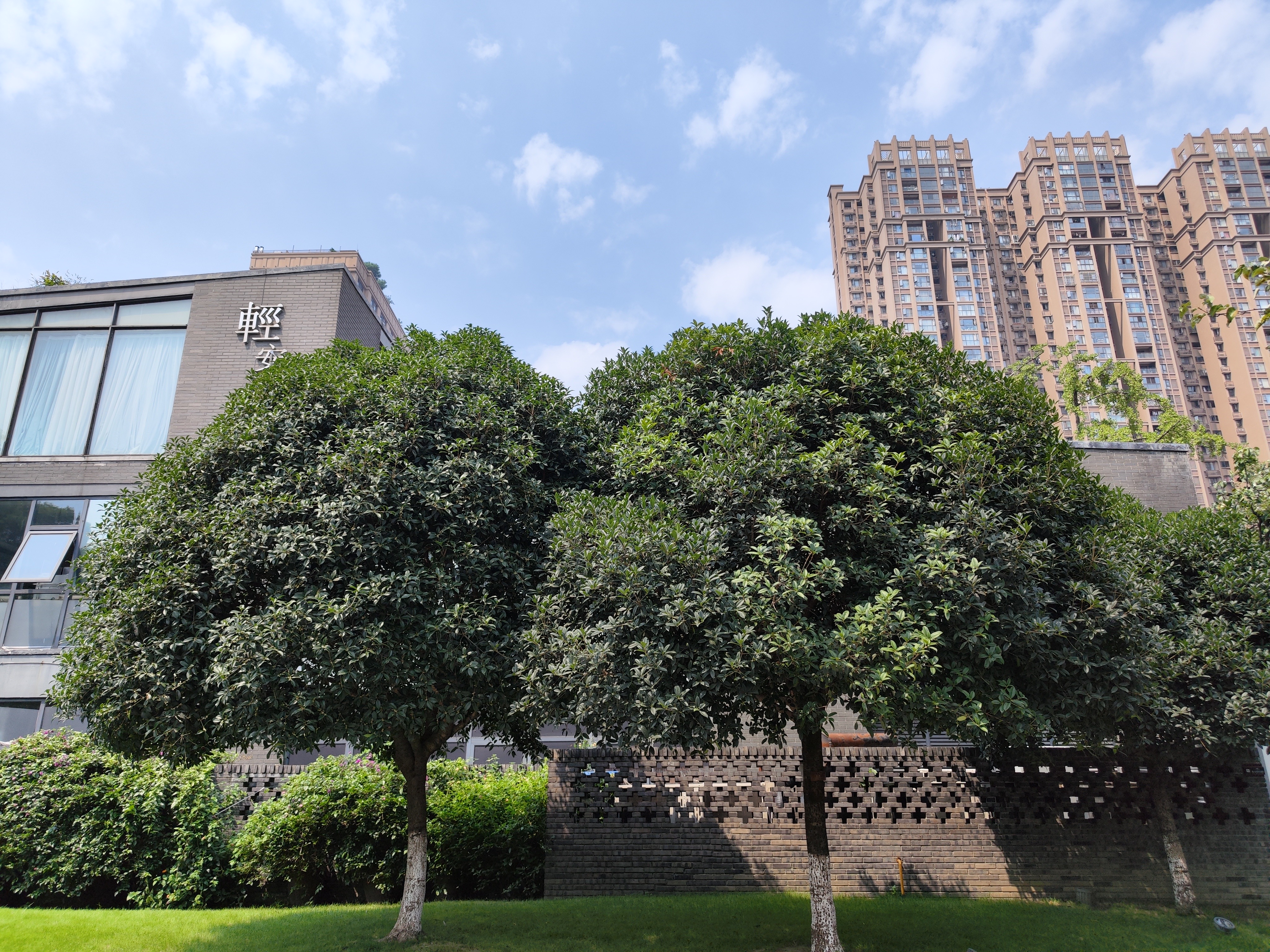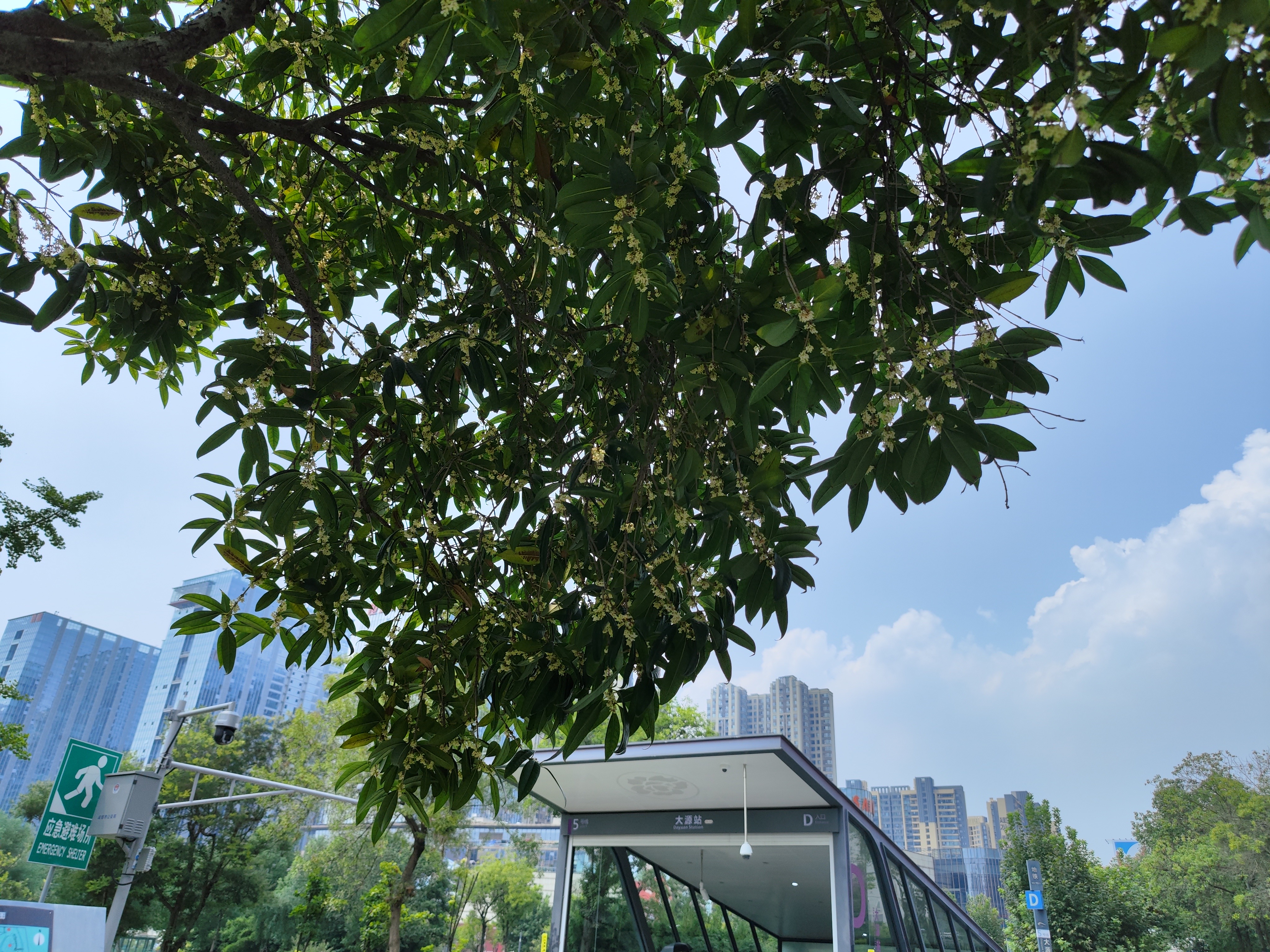 站在大源公园的北门,还未踏入,就能闻到淡淡的桂花香,抬眼望去,从门口由外到内的桂花树上已经有朵朵银桂花绽放枝头,虽不密集,但空气中弥漫的花香,也足以让人入迷。循着花香向公园内走去,忽而吹来的微风,也夹杂着清甜的花香。即便只是在公园外路过,也能带走一身桂花的幽香。