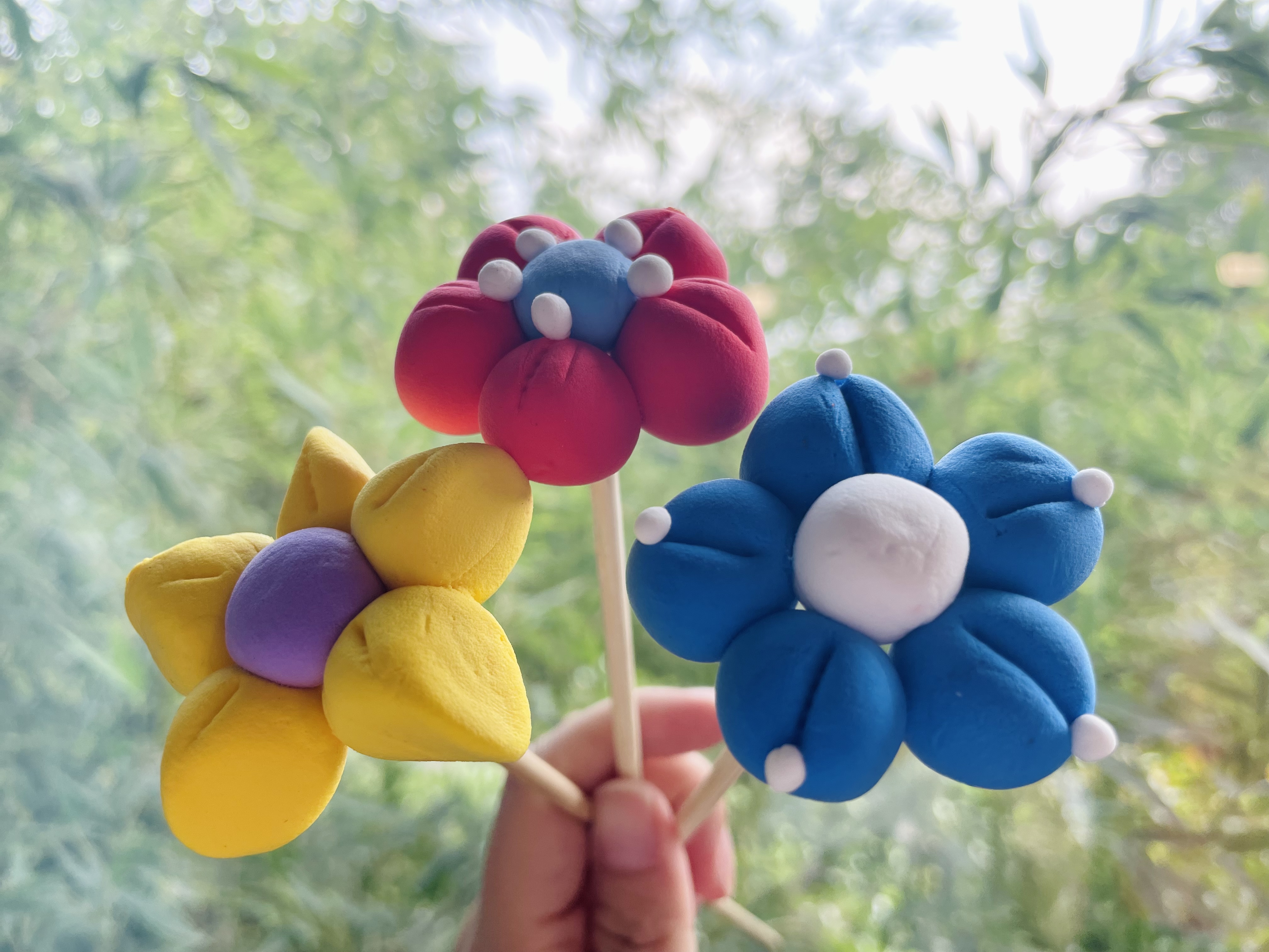 在超轻粘土手工制作“花束寄师恩”环节,老师一边讲解一边示范制作粘土花束的过程,在关键步骤时,还会手把手教学,让孩子们轻松掌握制作技巧和要领。孩子们将黏土捏在手心,用手轻轻旋转,手指一捏,把黏土化作玫瑰、郁金香、牡丹......一件件作品都是孩子们真挚情感的的投影,展现着孩子们的巧思与创意,承载着孩子们对老师的爱戴与感恩。