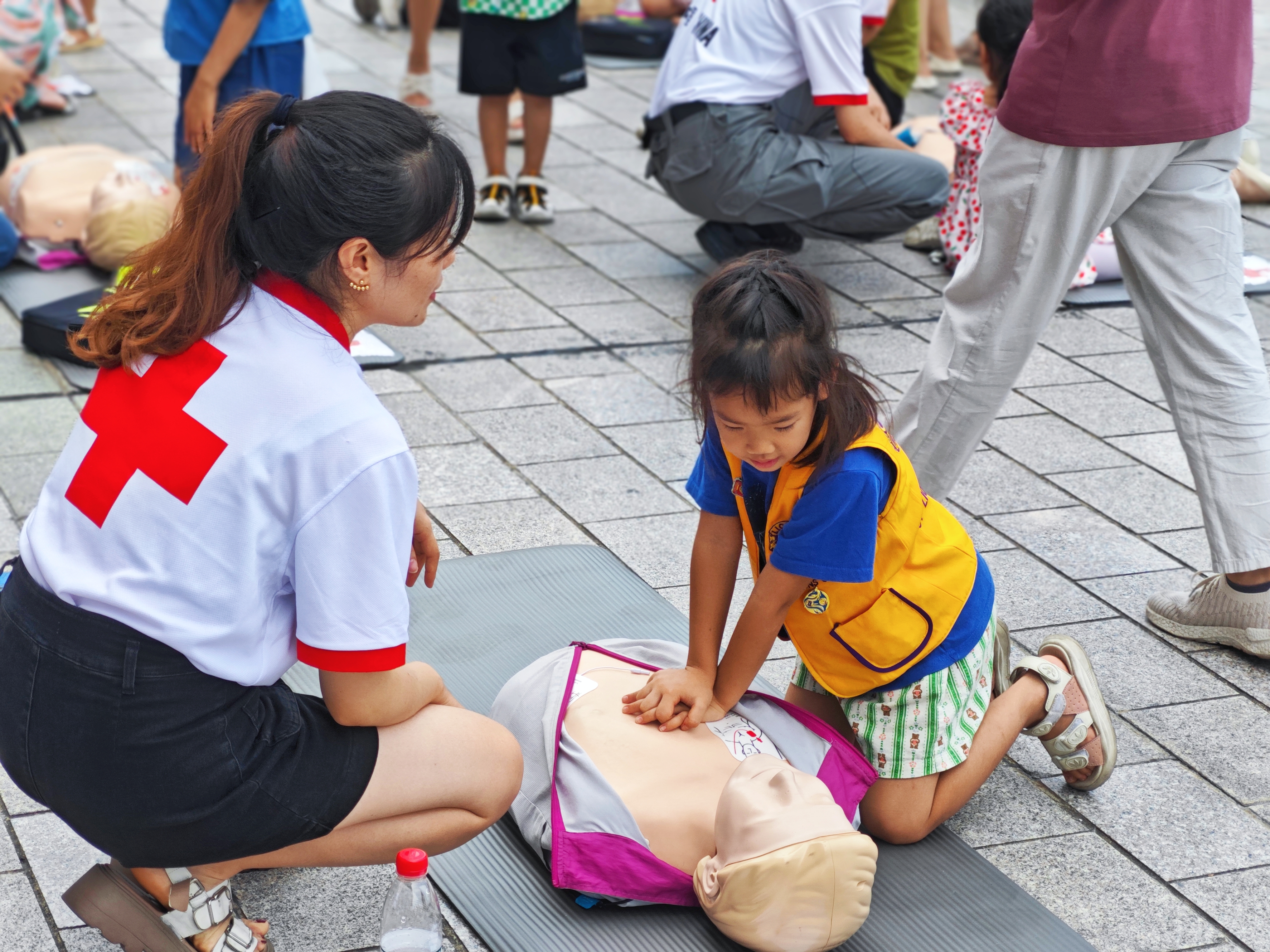 9月9日下午,“数字赋能 救在身边”四川省红十字会2023年“世界急救日”主题宣传活动在成都高新区环球中心东广场举行。记者在现场看到,活动设置了集体心肺复苏(CPR AED)展示、救援装备展示、救援救护技能冲关学习体验活动等环节。