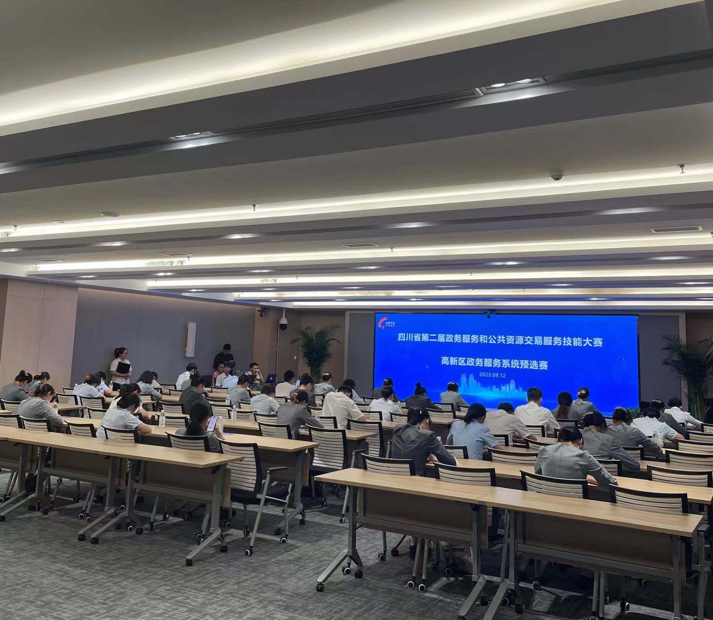 “现代四川,政务当先”!9月12日,“四川省第二届政务服务和公共资源交易服务技能大赛高新区政务服务系统预选赛”在成都高新区政务服务中心举行。比赛共有42名选手报名参赛,配备6名计分人员,采用线上限时答题、线下抢答、现场计分排名的机制进行。比赛分别设置个人一、二、三等奖和团队奖,共选出5名优秀选手代表高新区政务服务系统参加成都市初赛。