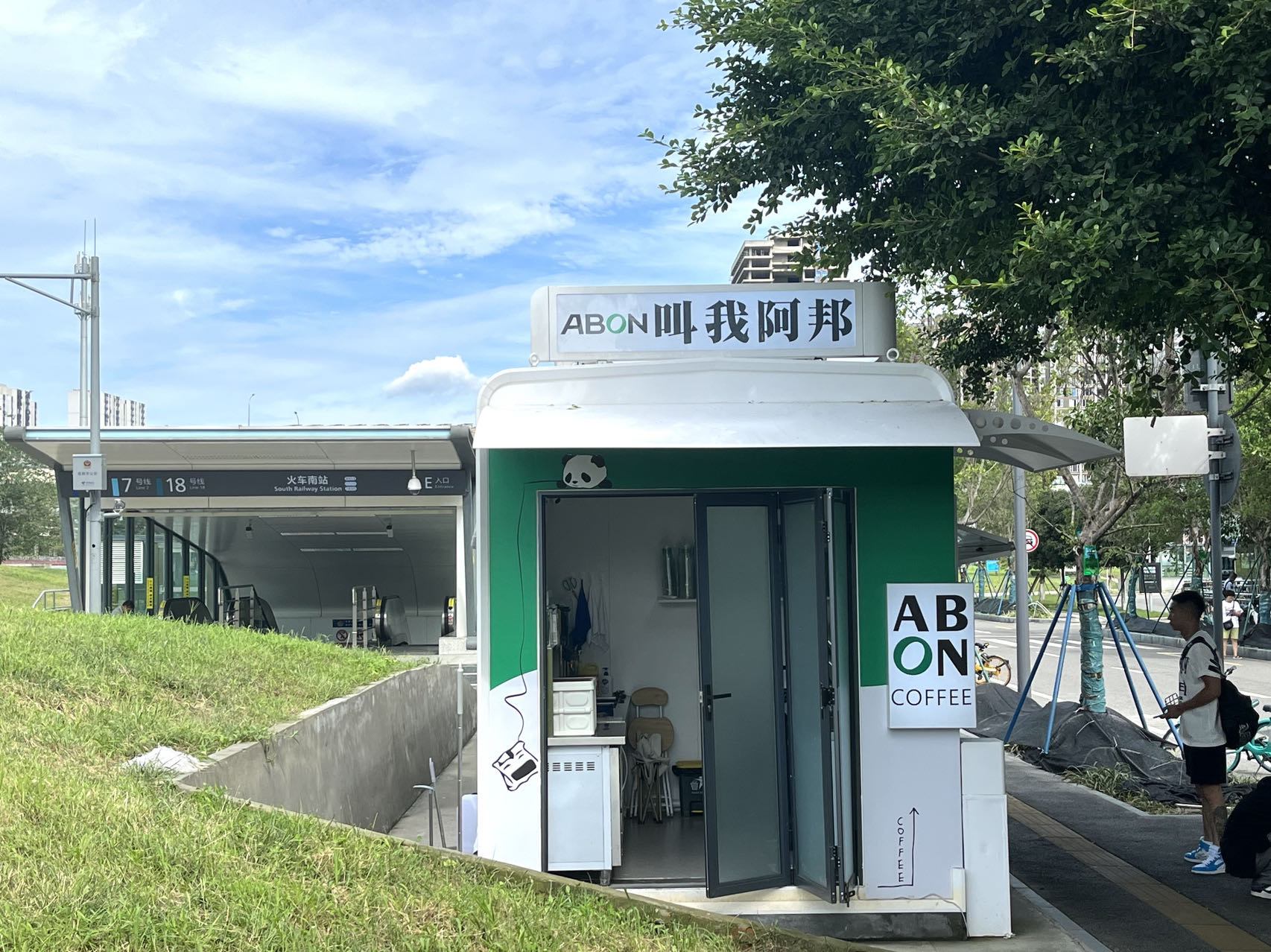 在火车南站地铁G口处的轻松驿站经过改造,结合阿邦咖啡品牌风格,融入成都特色,绘制了可爱的大熊猫和天府双塔等标志,成为一道靓丽的风景线。家住附近的市民俸娟2个月前外出散步时看到这里的变化,“造型很可爱,看着都赏心悦目,不用走很远就可以在这里买到我喜欢喝的柠檬茶,既方便了生活,又美化了环境。”