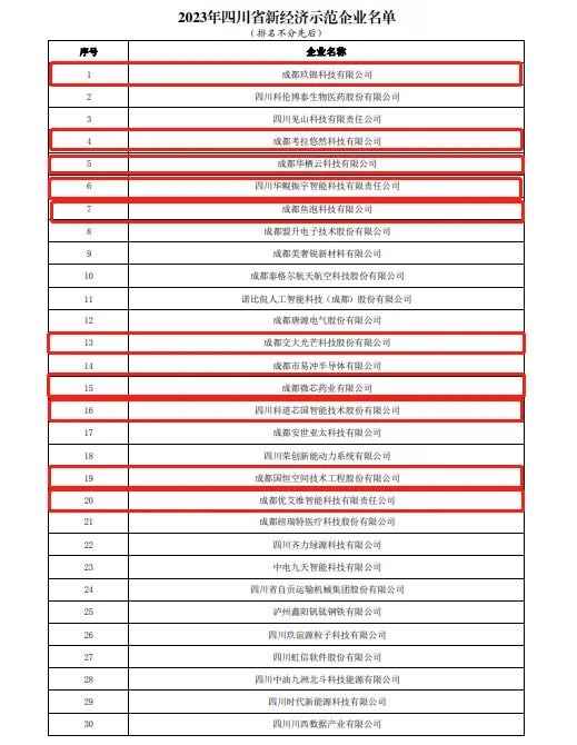 9月20日,记者从成都高新区发展改革局获悉,在四川省经济和信息化厅公布《2023年四川省新经济示范企业名单》中,成都高新区10家企业入选!