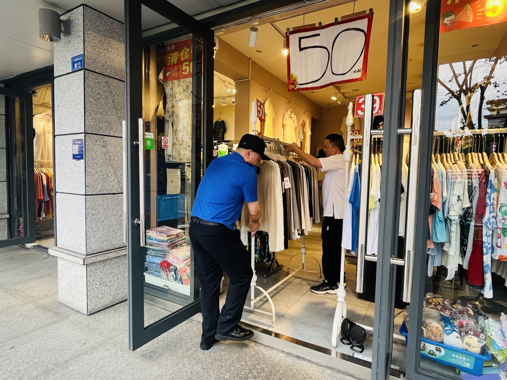 街边一家女士服装店的陈老板正在看店,当收到系统短信提示店铺门口有行人乱丢垃圾时,他马上走出去把垃圾捡起来。“门前的垃圾不仅影响生意还影响市容,现在有了这个系统,不用时时刻刻盯着,对我们维护环境卫生有极大的帮助。大家都齐心协力共同维护门前环境,让公共环境变好,我们的生意也会更好做。”