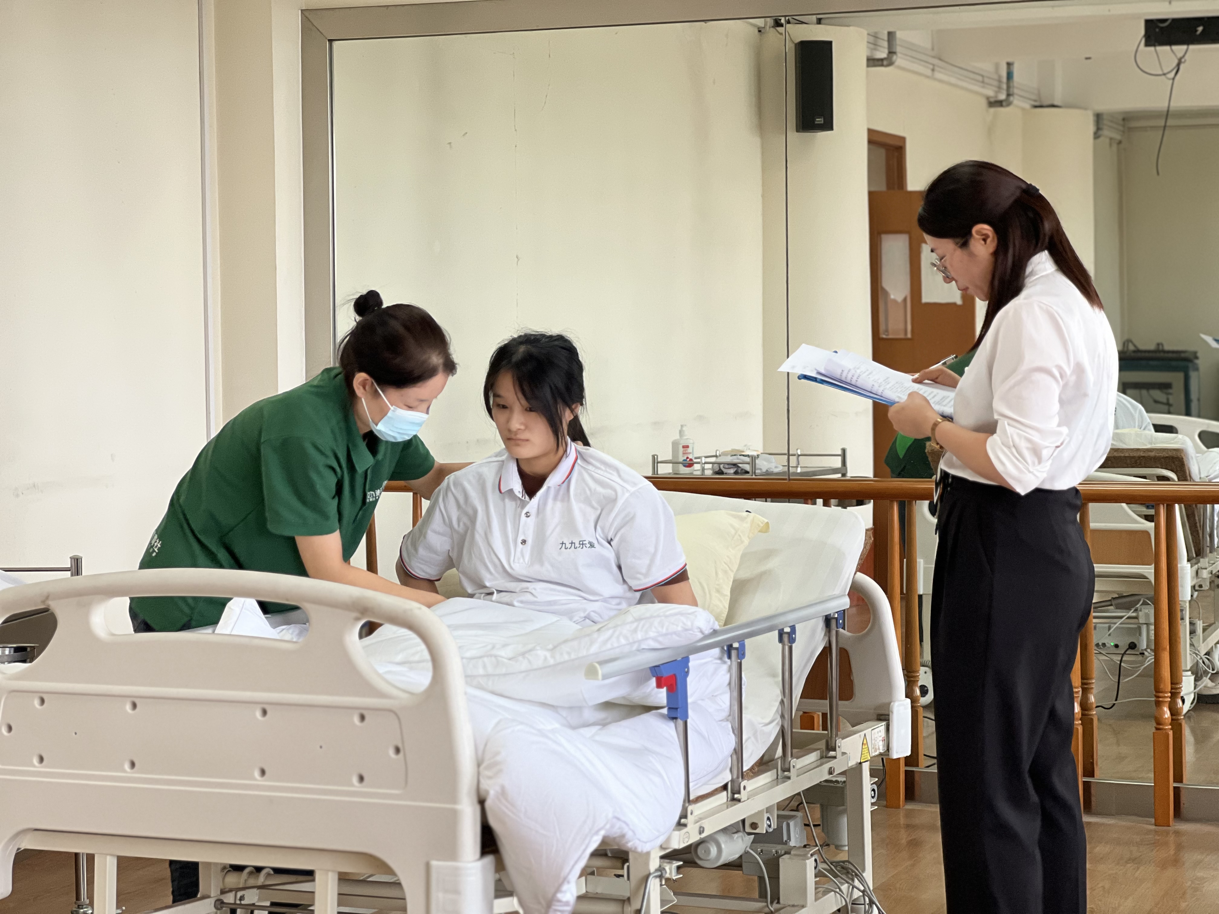 比赛中,各位选手全神贯注、信心十足,操作认真严谨、动作协调规范,展现出了精湛专业的护理操作水平和耐心细致的陪护精神。评审团从选手们对老年人照料工作的专业技巧性、动作规范性以及对老年人的呵护和关爱程度来进行客观、公正、公平的评判。