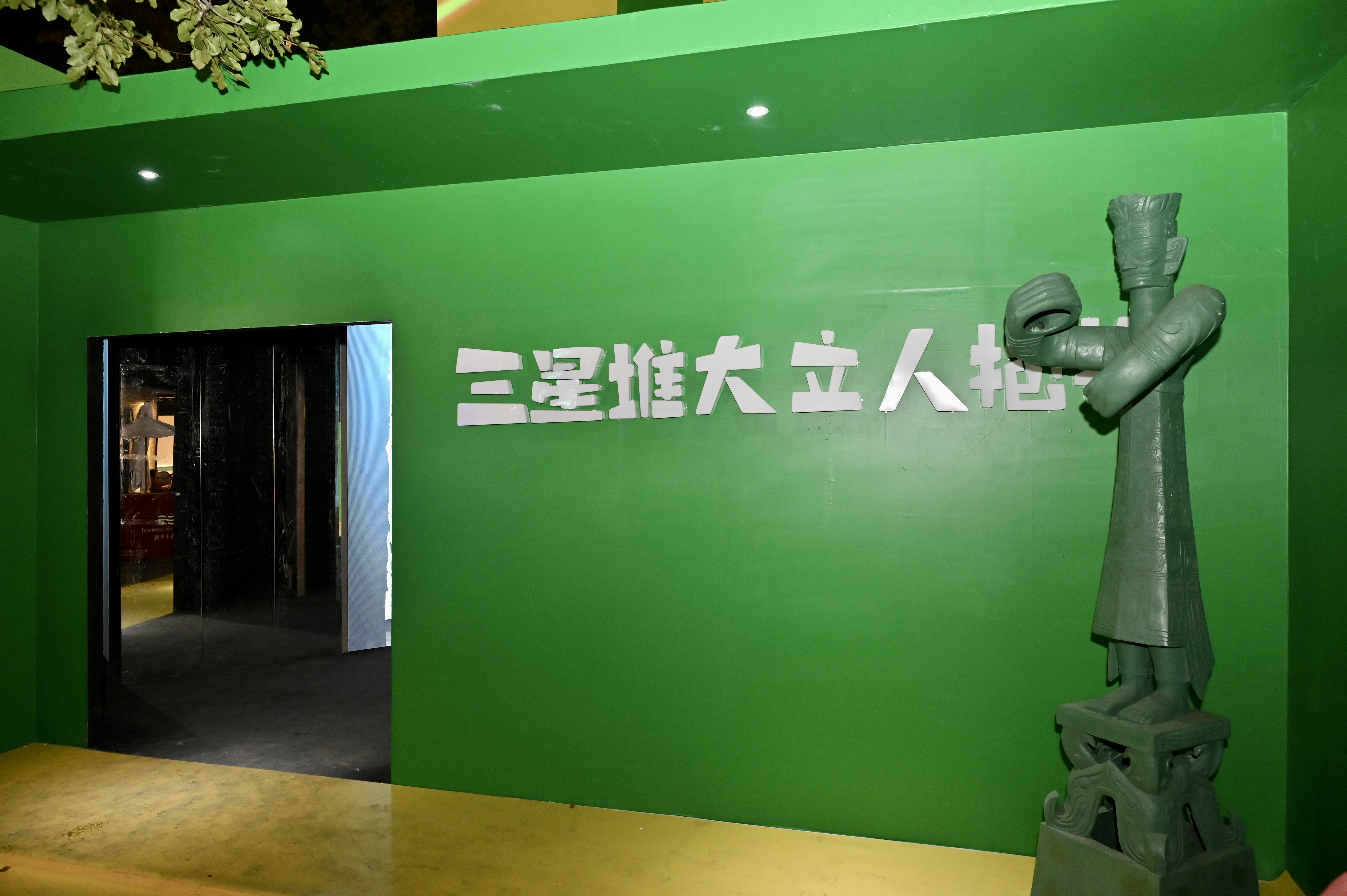 当夜幕降临时,三星堆沉浸式数字城市展厅的户外大屏上,从浩瀚深遂如宇宙的时空背景中,三星堆青铜大立人、纵目面具、黄金权杖等三星堆出土文物由远而近逼至眼前,栩栩如生的形象、伸手便可摸到的真实感,让现场充满了三星堆文明神秘又辉煌的气息。置身其中,使人恍如置身数千年的历史长河中。