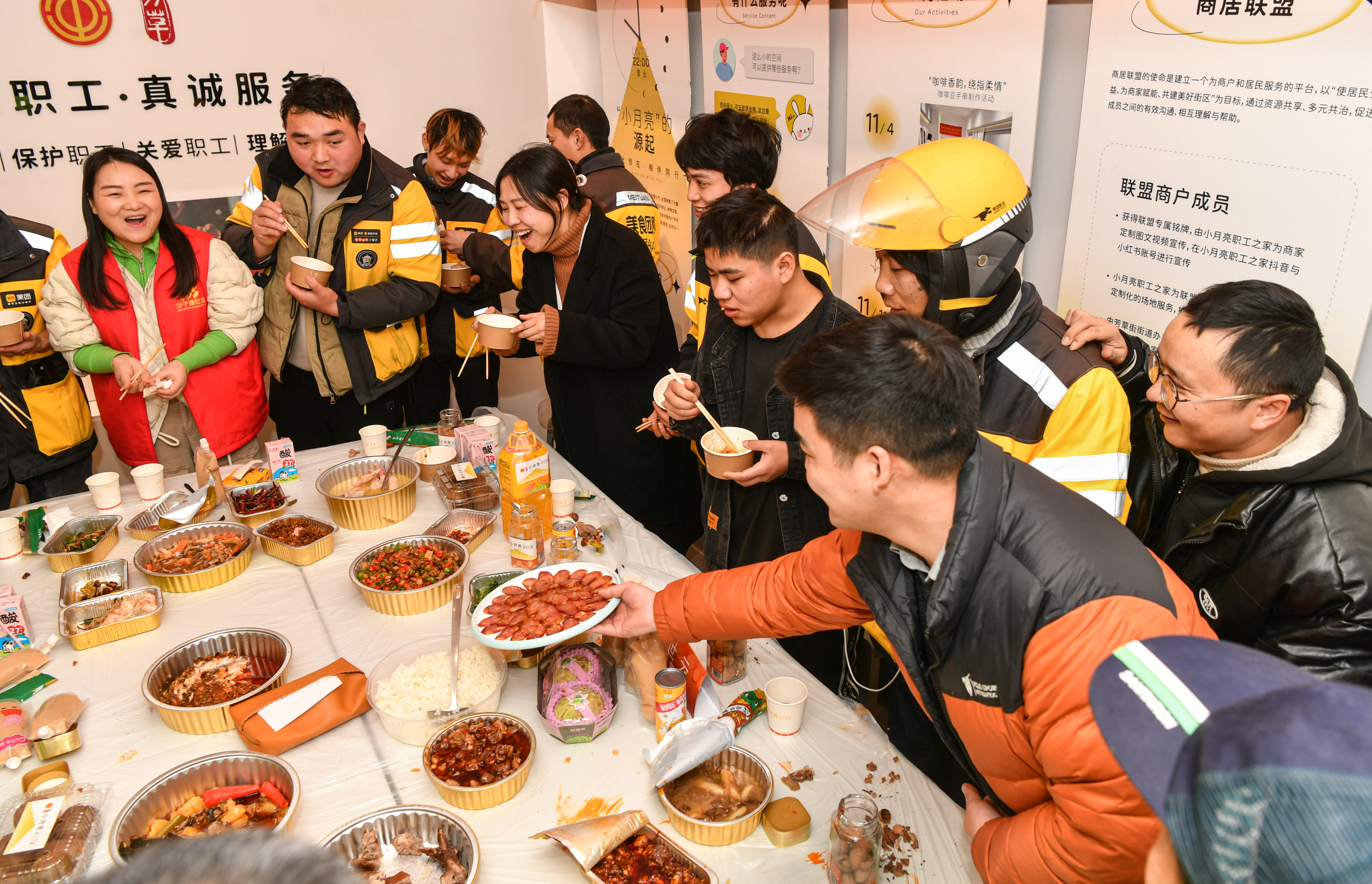 又是一年新春到,大街小巷张灯结彩,家家户户除旧布新,到处洋溢着春节的喜庆氛围。在万家团聚的时刻,仍有人坚守岗位,护航千家万户的祥和幸福年。今天是“小月亮职工之家”自去年9月揭牌启用后迎来的第一个除夕,“小月亮职工之家”和爱心商家们一起,为“街友们”准备了一顿丰盛的年夜饭。