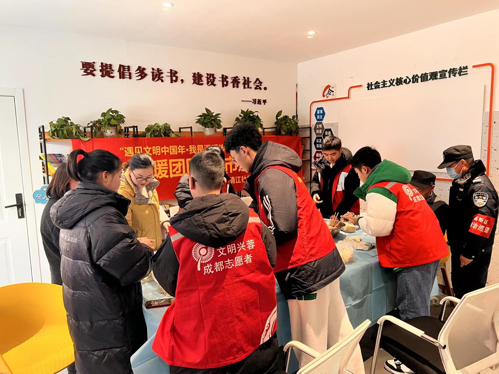 为弘扬传统节日文化,营造浓厚节日氛围,2月9日,成都高新区合作街道清江社区在顺江农贸市场菜市书屋组织开展了“温暖团圆·菜市过年”活动,附近菜市商家、居民、志愿者们踊跃参加,大家齐聚一堂,共同感受家的温暖和邻里温情。
