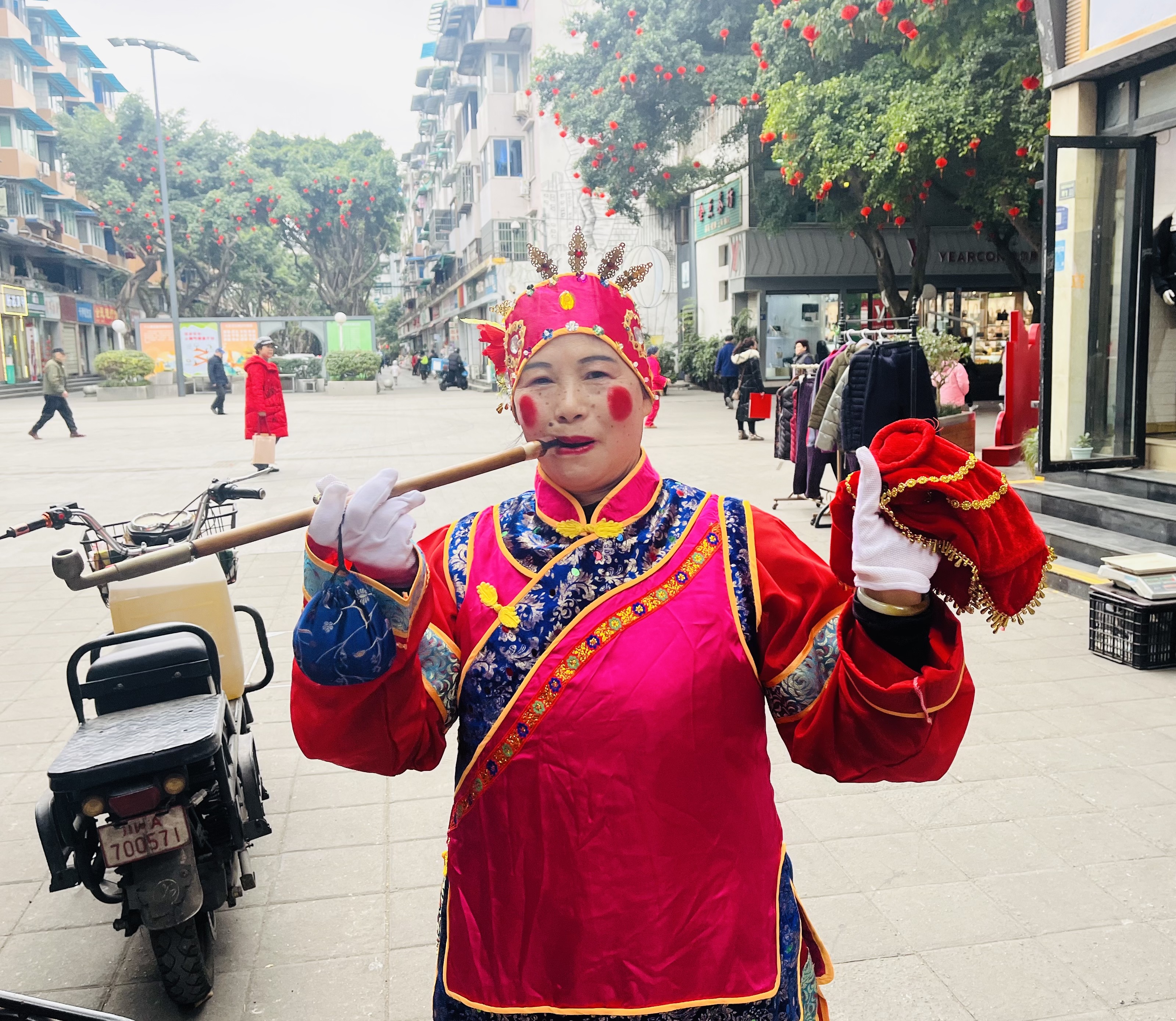 64岁的左尚玉扮演媒婆,她身着传统服饰,手持烟斗等道具,通过夸张幽默的动作和表情,展现出媒婆角色的独特魅力,为巡游增光添彩。“演媒婆不能怕丢丑,‘洋相’百出才好看。”左尚玉说,她就是靠着那股敢演敢做的劲儿,才逗乐了大家,“每次参加巡游表演我都演媒婆,坚持了10多年,就是想跟大家一起热闹热闹,沾沾新年的喜气。”