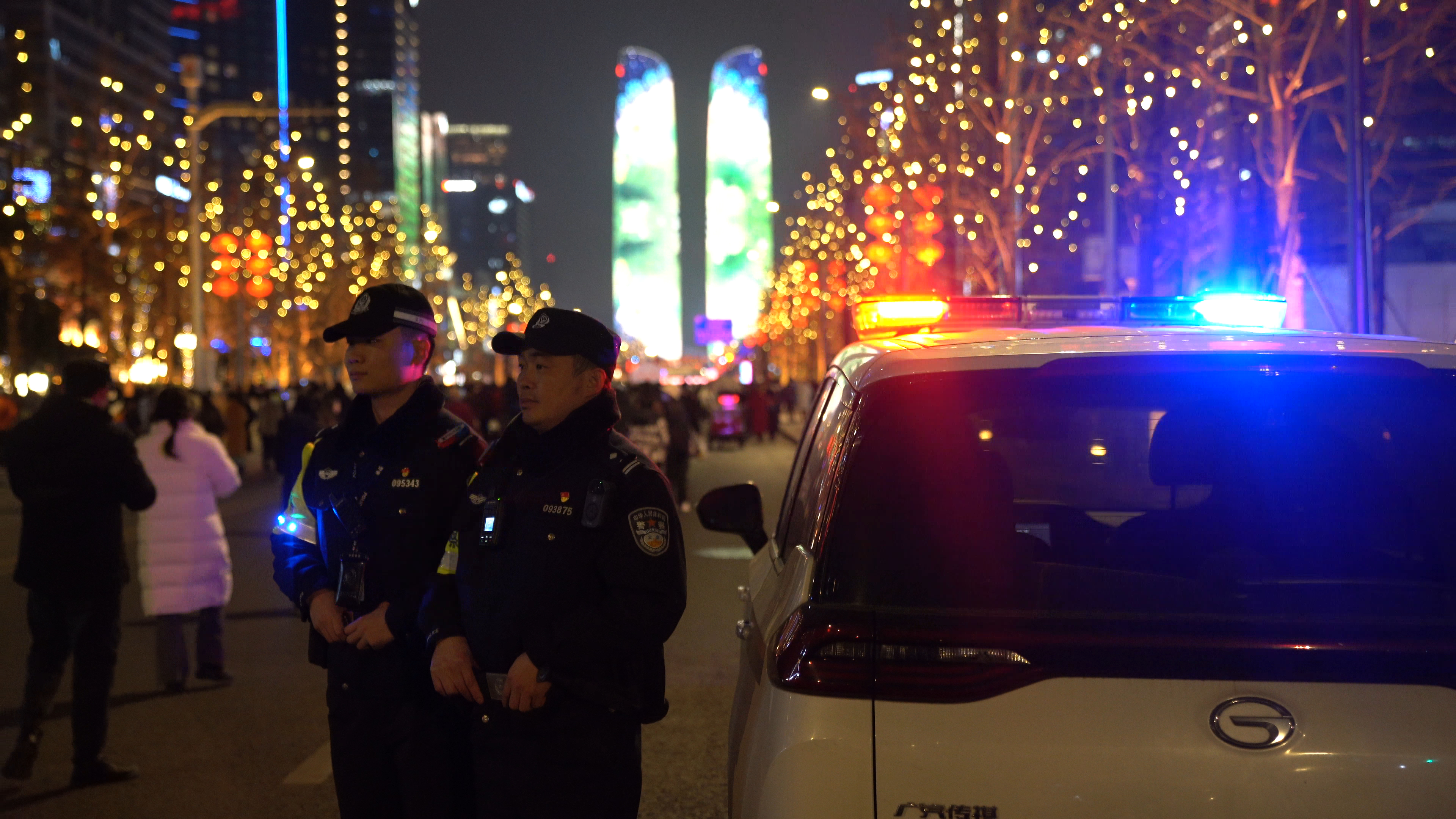 成都高新公安民警张亚豪正在交子大道音乐广场执勤,他配备着对讲机四处巡逻,确保第一时间接受指令。“我们设置重点管控路段,充实了路面管控力量,以全面覆盖的方式,切实增强对现场的控制力。”张亚豪说,下午4点他们就抵达现场开展活动前的动员与准备,“直到观看灯光秀的游人都散去,车辆安全有序通行,我们才算结束了今天的工作。”