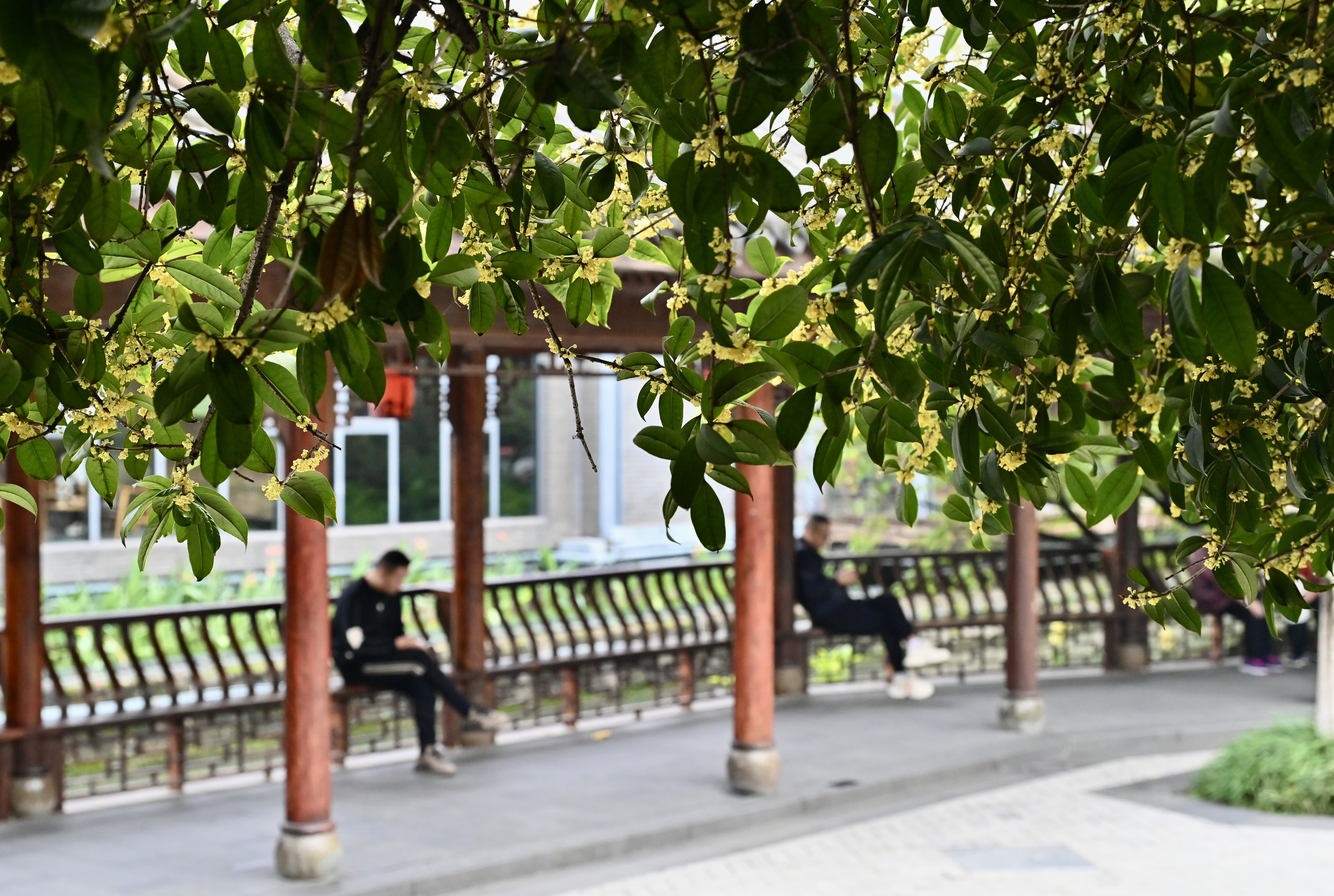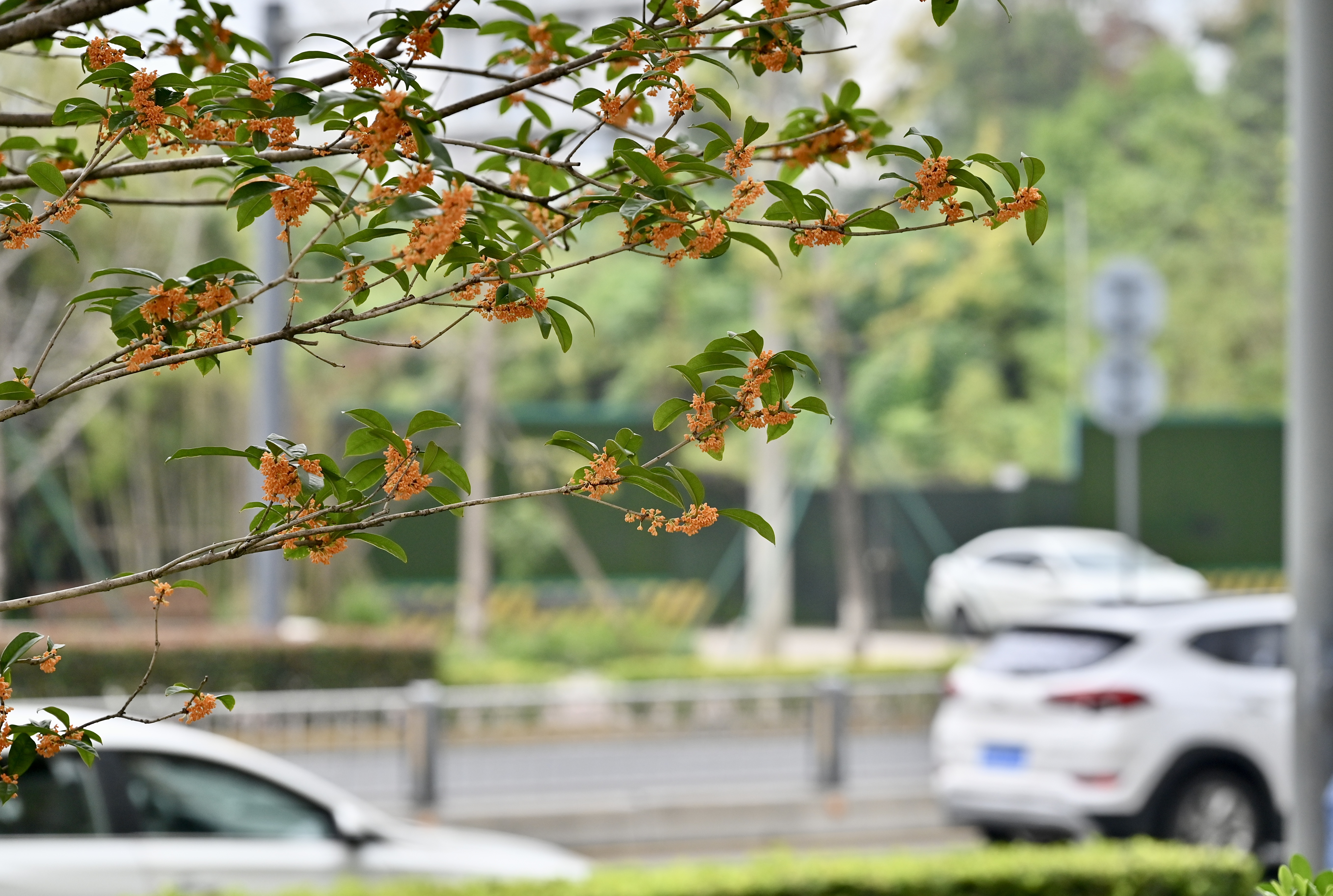 近日,成都终于迎来了迟来的桂花“盛宴”。金黄色的桂花簇拥在枝头,随风摇曳,空气里弥漫着令人陶醉的香甜气息。今年由于气候原因,导致桂花花芽萌发所需的适宜温度窗口期缩短,桂花开放时间延后。然而,这份“迟到”的芬芳却更加浓郁,仿佛是大自然对大家耐心等待的最好回馈。