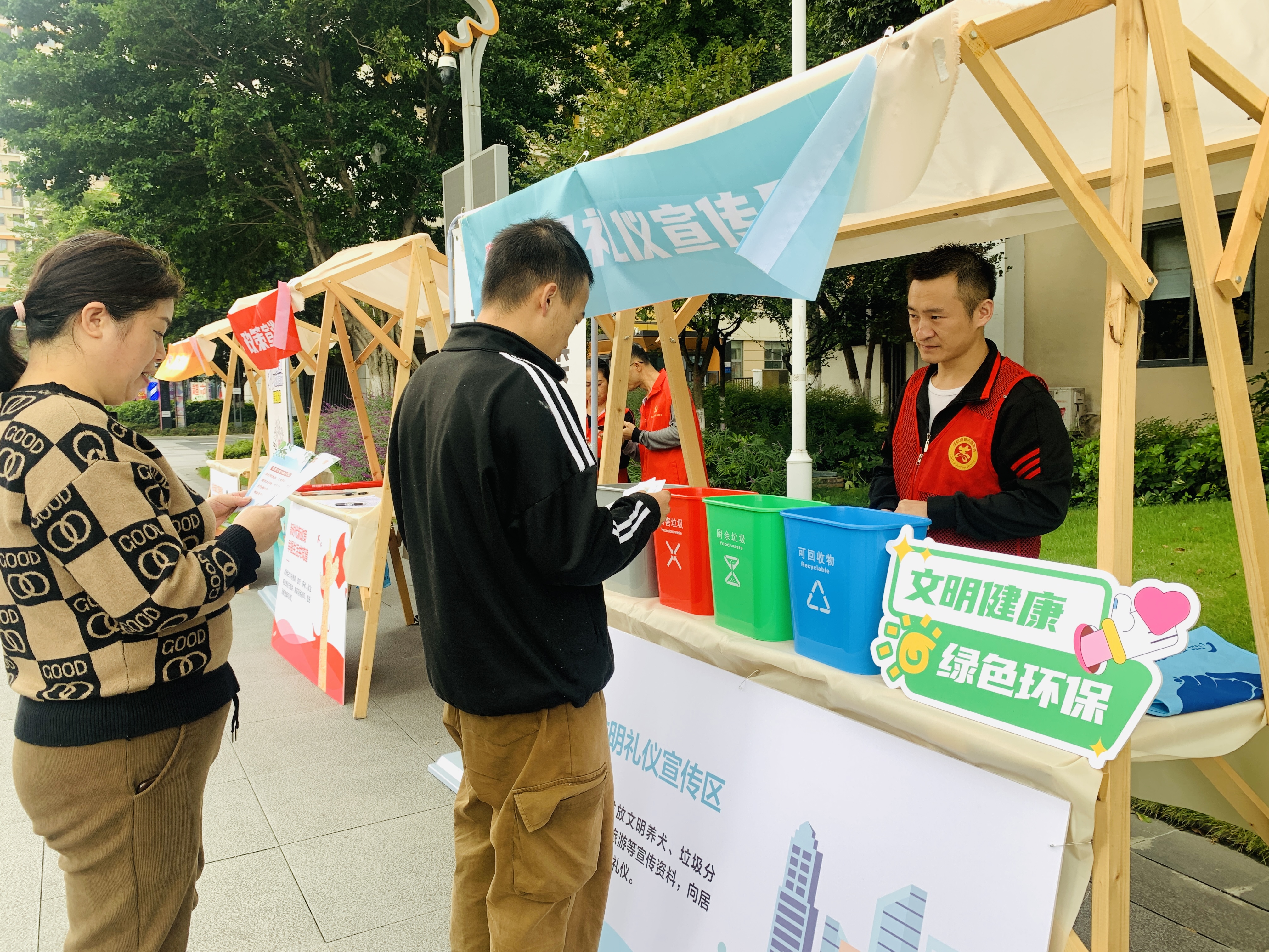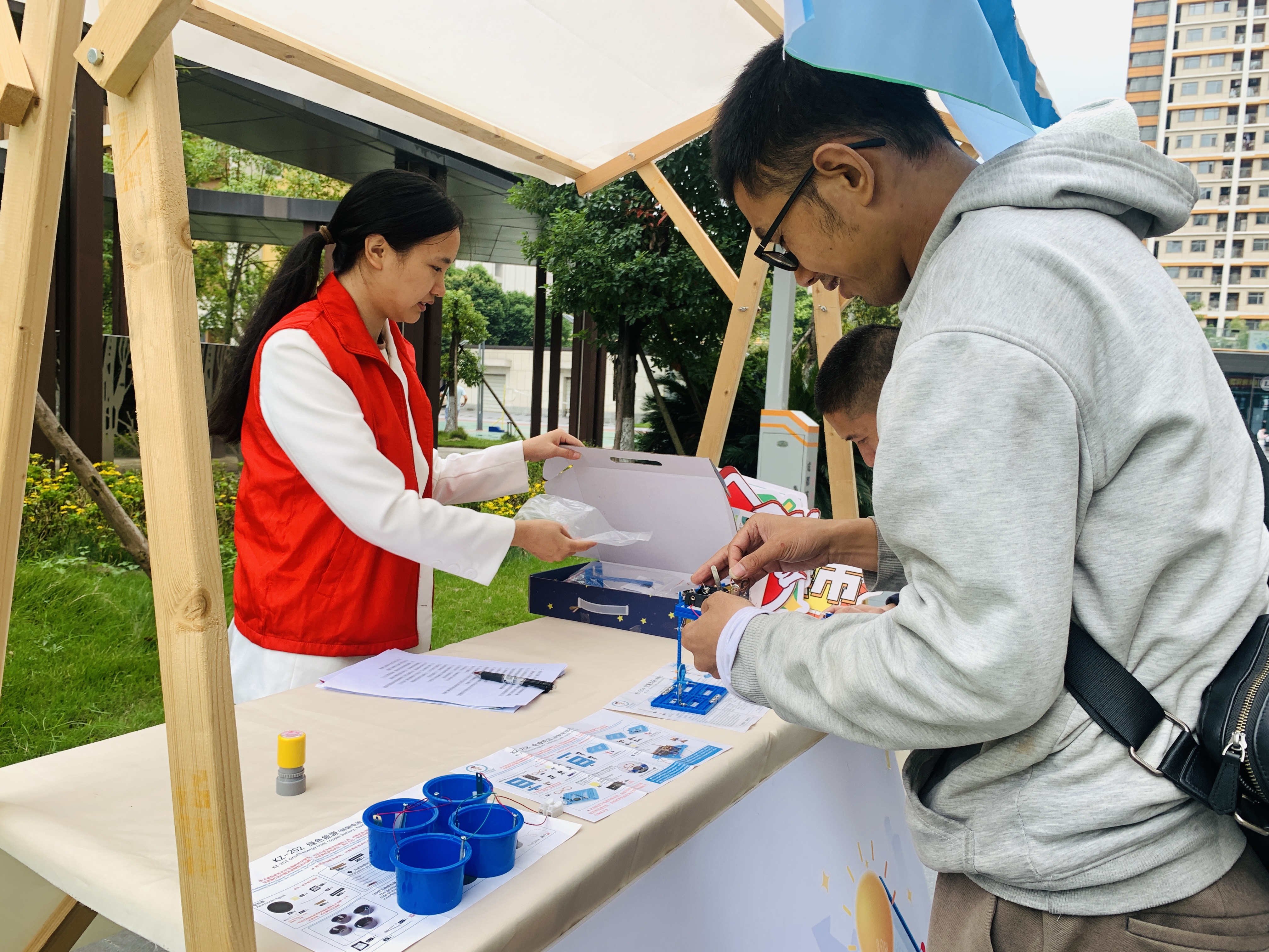 科技科普摊位则展示了电磁感应、电动小风扇、生物发电等科学小实验,“哇,小风扇真的能转起来!太神奇了!”活动现场时不时便传来小朋友的惊叹声。而在便民服务摊位前,社区志愿者为居民提供爱心理发便民服务,解决居民日常生活中的小困扰,提升居民生活便利性。最热闹的当数文明礼仪宣传区,青年志愿者们用生动的案例为居民讲解文明养宠、文明旅游、垃圾分类等宣传知识。“垃圾分类到底怎么分啊?我总是分不清。”居民李阿姨好奇地问,志愿者们耐心地一一解答,现场气氛热烈而融洽。