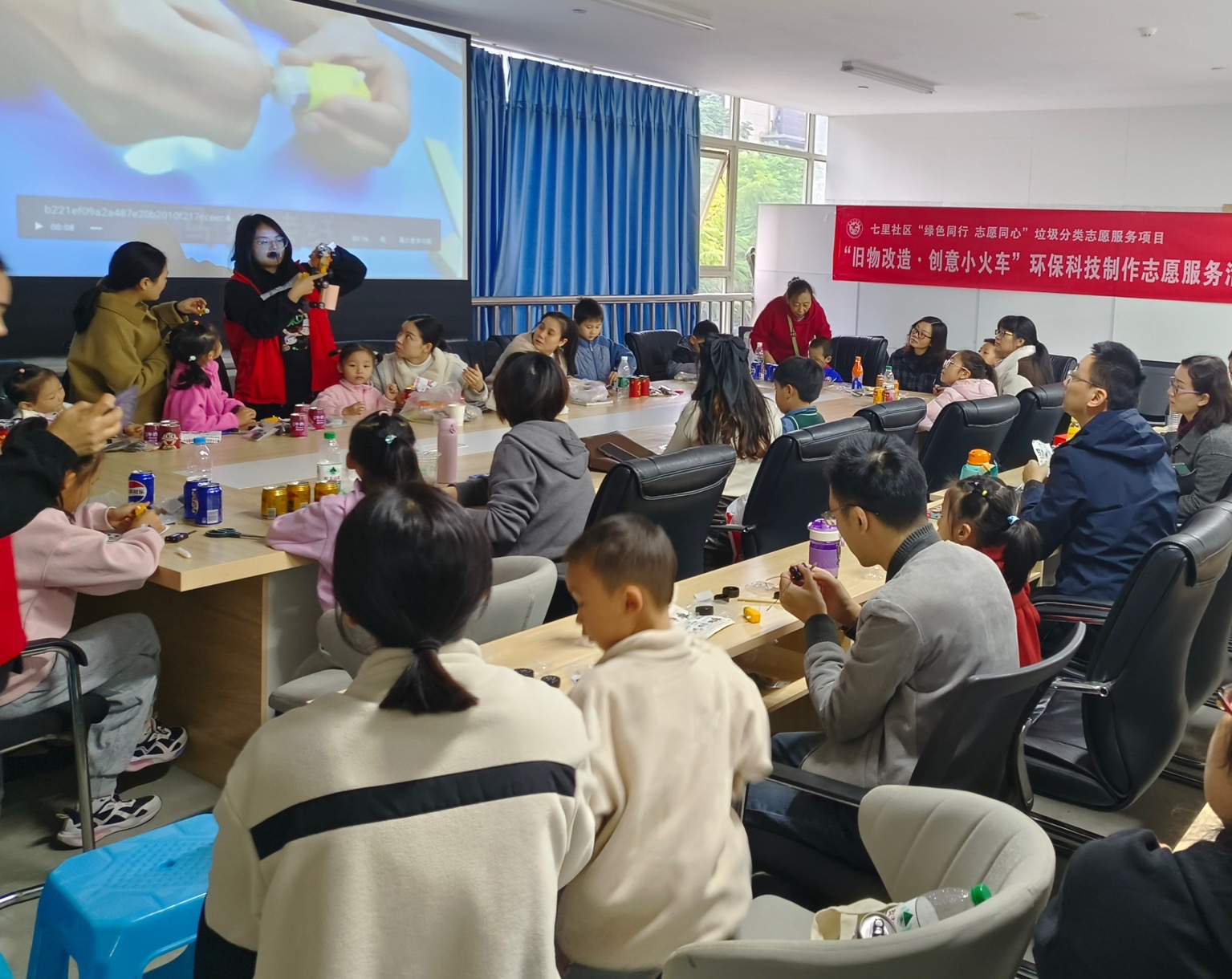废弃的易拉罐、闲置的手工材料、破旧的塑料瓶……孩子们用自己的巧手,将这些生活中的废旧物品变成了一辆辆“托马斯小火车”模型。11月10日,成都高新区中和街道七里社区开展了一场变废为宝的“旧物改造·创意小火车”环保科技制作志愿服务活动。