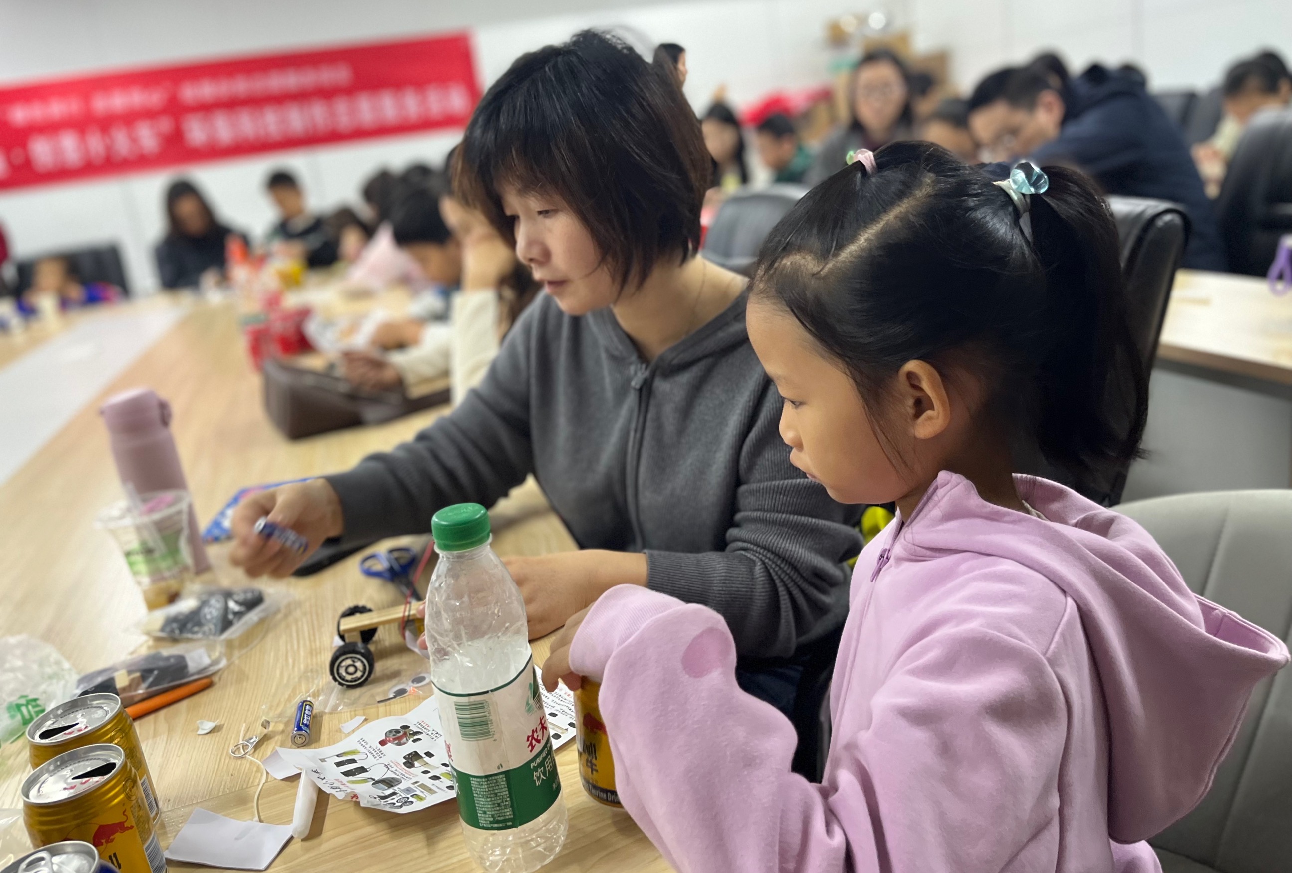 “家中旧物多,丢掉怪可惜的,对它们进行二次利用是件很有意义的事,以后会多尝试。”家长吴先生说,“这次来参加活动,和孩子一起学习垃圾分类知识、一起做手工,增进了父子间的感情。”