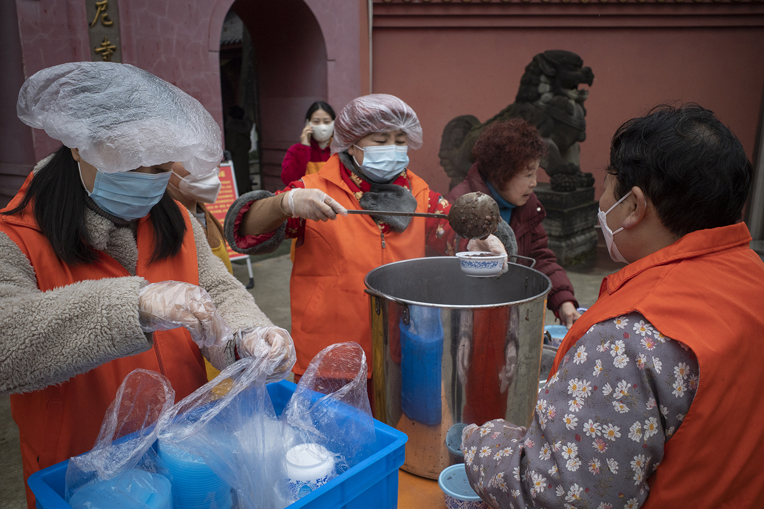 值得一提的是,除了街道社区外,在位于成都高新区的铁像寺,寺院志愿者和义工们也组织开展了“腊八施粥”活动。据了解,每逢腊月初八,各寺院向社会进行奉粥活动,已成为每年冬日重要的文化传统,让群众喝到一碗热气腾腾、暖意融融的甜粥,也给寒冷的冬日增添了不少温暖的氛围。