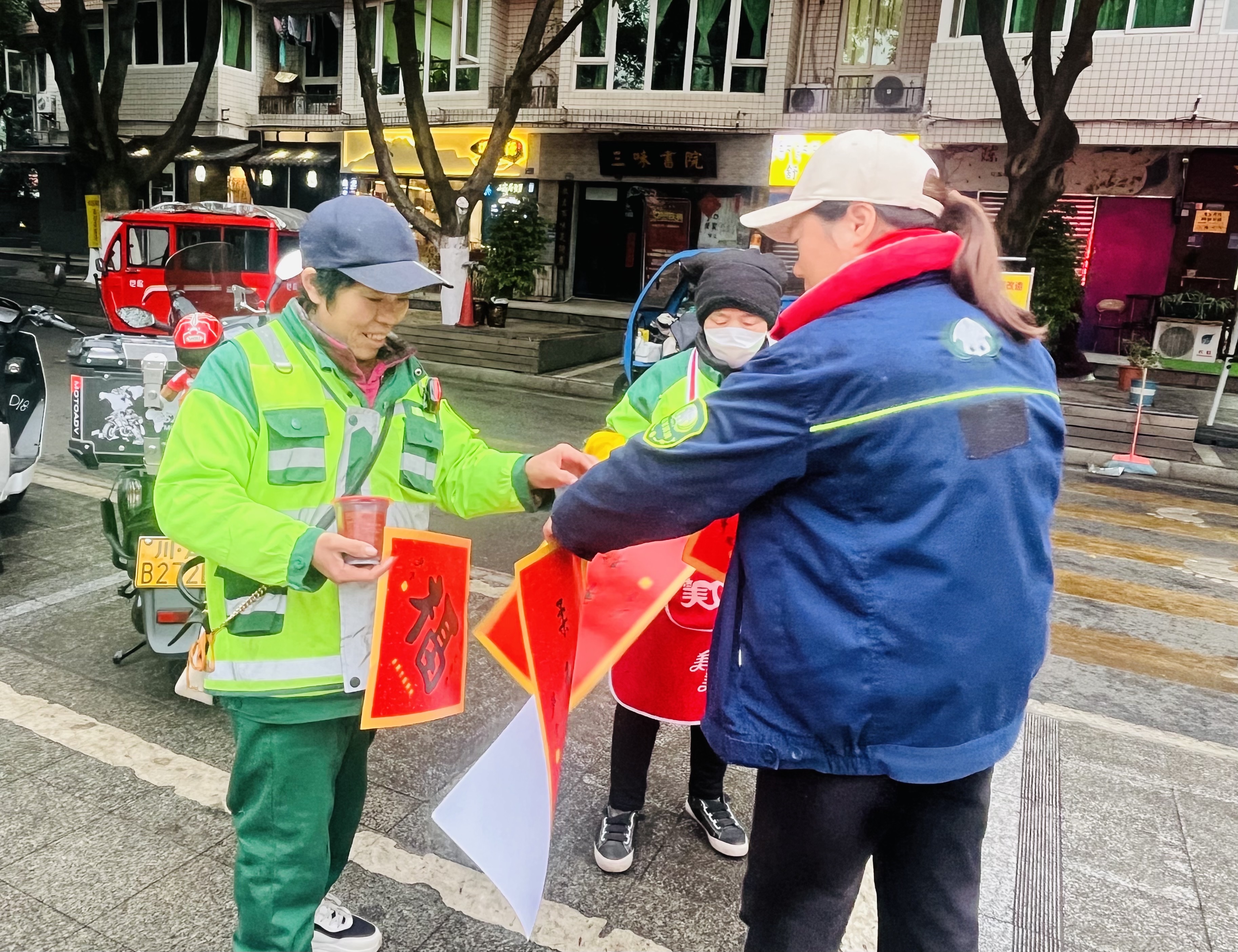 随后,社区志愿者来到街头,为坚守岗位的环卫工人、社区门卫等送上一碗腊八粥,感谢他们的辛勤付出和奉献,同时提醒他们在冬日里做好保暖、注意安全、保重身体。