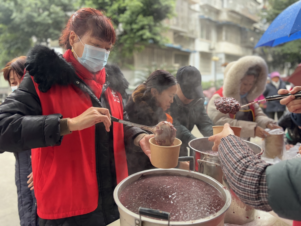 在飘着细雨的冬日里,一碗碗腊八粥,一句句“辛苦了”,一声声“新年好”,驱散了大家身上的寒意,也温暖了人心。“一碗热粥,浓浓情味。”肖家河街道相关负责人表示,希望通过送腊八粥的形式来弘扬中国传统文化,让居民感受到社区对他们的关心关爱,为即将到来的新春增添年味。