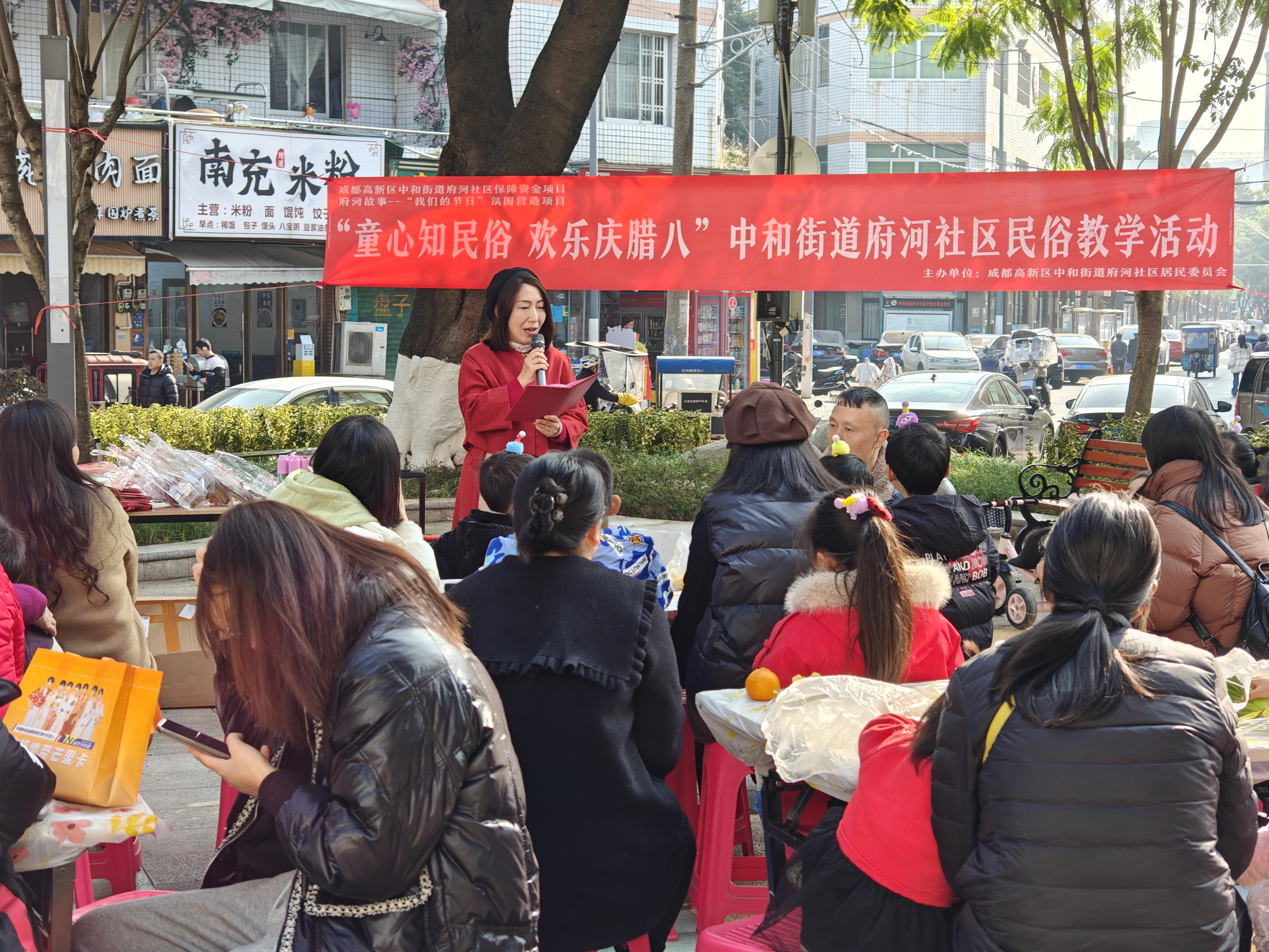 中和街道府河社区开展了以“童心知民俗 欢乐庆腊八”为主题的民俗教学活动,以民俗文化为纽带,引导小朋友们认识和了解民俗文化内容,通过丰富多样的传统艺术项目体验和亲子互动环节,让孩子们领略中华文化的博大精深,并带领辖区居民一起感受传统民俗文化的独特魅力。