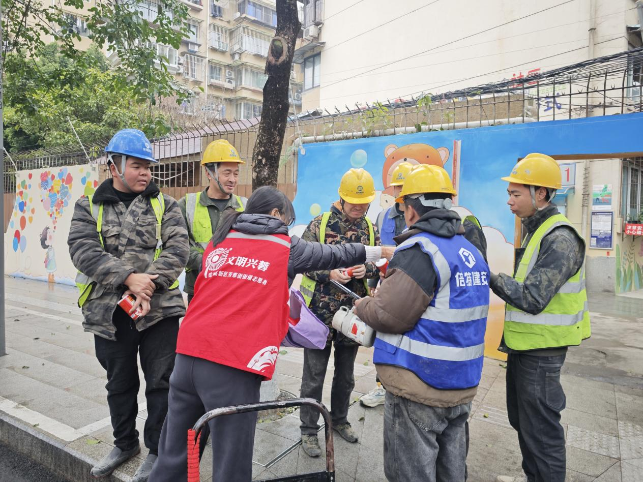 活动现场,神仙树社区志愿服务队的志愿者们准备好大枣、桂圆、莲子、黑米、小米等10余种食材,熬制了新鲜美味的腊八粥,与社区工作人员一同前往玉林中学在建工地,为还在一线施工场地辛勤工作的工人们送上节日的慰问和关怀,让一碗碗热气腾腾的腊八粥为他们驱散长时间户外劳动的寒意。同时,志愿者们也向环卫工人、交警送去了热粥,感谢他们为维护社区环境和交通秩序所做出的贡献。