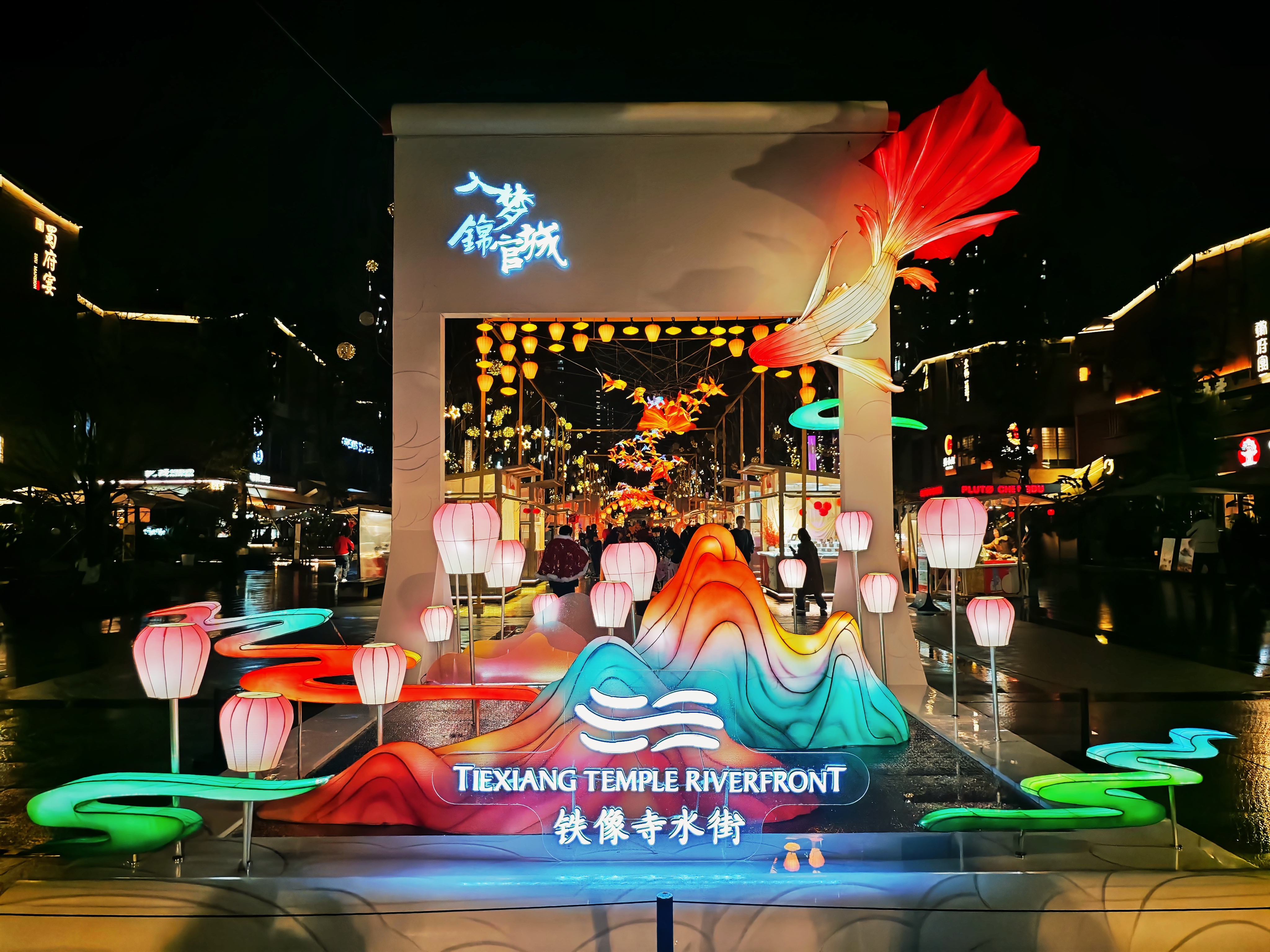 火树银花夜如昼,万千笑颜闹春风。1月10日18时30分,随着数千盏华灯在水街同步点亮,绽放璀璨夺目的光芒,铁像寺水街“入梦锦官城”华灯展正式启幕。据悉,铁像寺水街联合国家非遗自贡灯会团队,在水街求贤牌坊、中轴线/通锦桥、龙堤池、千秋池和喷泉广场五个点位,以千盏华灯为笔,为游客漫卷绘出“五重锦城梦”。