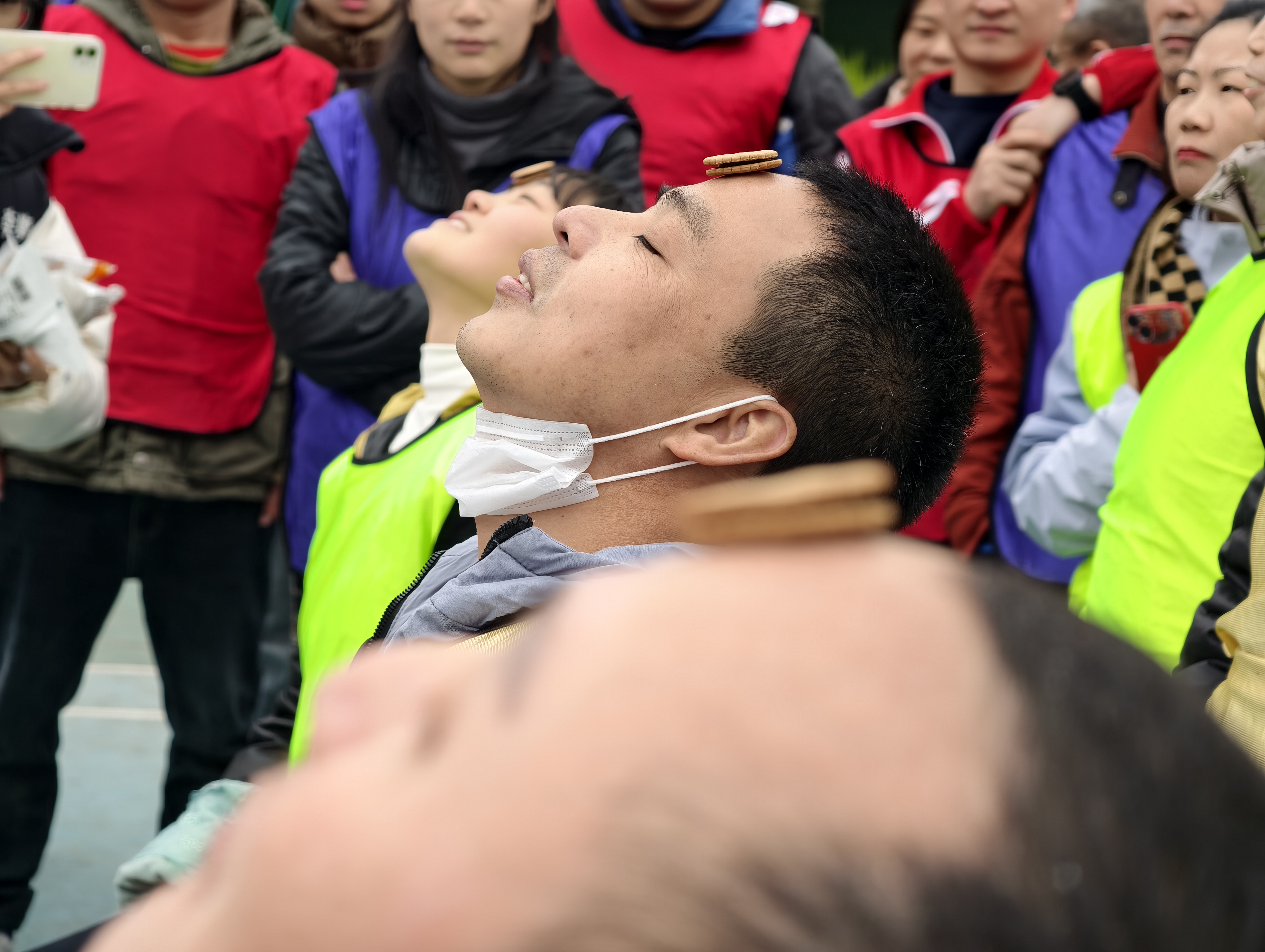 而将活动推向高潮的,无疑是“挤眉弄眼”比赛。参赛队员们通过脸部肌肉的运动,努力将饼干从额头移至口中,滑稽的动作和可爱的表情让现场观众捧腹大笑。“这比赛真是太有趣了!平时看起来很严肃的人,也在活动中释放了自己的天性。这次活动真的很有创意,让我们度过了一个非常快乐的周末。”居民李敏笑说。