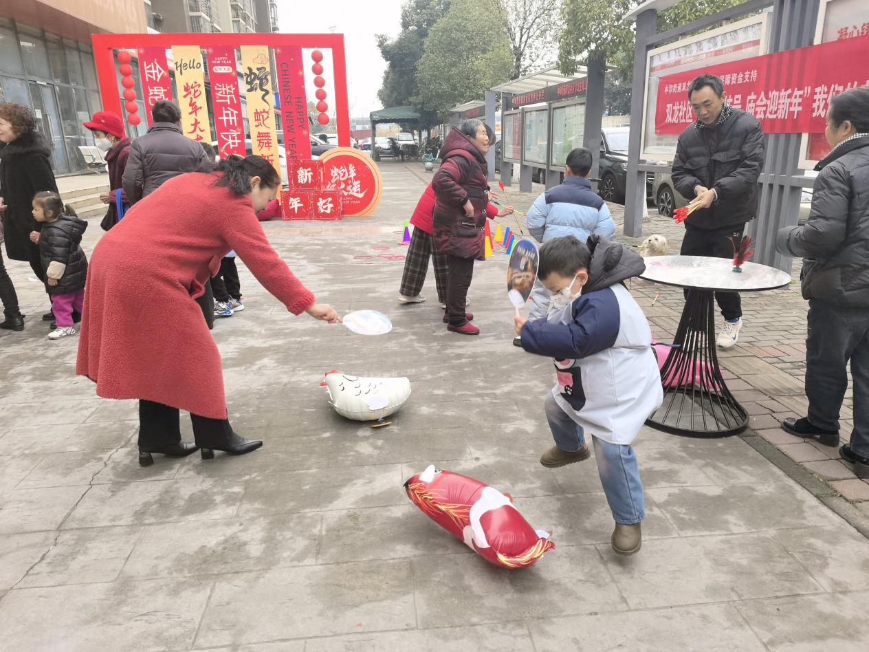 东寺社区在九里晴川小区内举办热闹的游园会活动。大红灯笼高挂,春联福字张贴整齐,整个小区洋溢着浓浓的年味。游园会现场设置幸运大转盘、抽红包、传统美食摊位以及灯谜区等多个区域,吸引众多居民前来参与。孩子们兴奋地体验着各种游戏项目,传统美食摊位前更是人头攒动,居民们品尝美味的同时,也与邻里分享着欢乐。灯谜区则有许多居民驻足思考,大家开动脑筋、揭晓谜底,并赢取奖品。