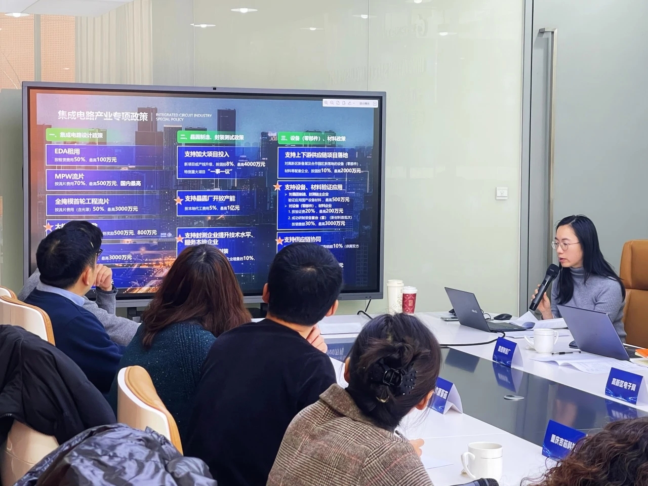 会上,成都高新区电子信息产业局向企业代表们深入推介了成都高新区集成电路产业政策。“政策针对IC设计企业流片研发成本高的需求,加大了支持力度。特别对成都高新区重点发展的处理器芯片、通信芯片、感知芯片、功率、存储器等细分领域,按工程流片费50%给予最高3000万元补贴,力度与国内最高水平相当。”成都高新区电子信息产业局相关负责人介绍。