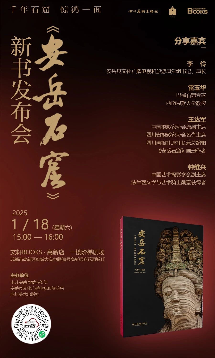 《安岳石窟》是一部汇集了摄影家王达军多年摄影成果的画册,精选其拍摄的高精度的安岳石窟造像影像,最大限度地还原安岳石窟的细节特征,揭示其历史、艺术与美学价值。在新书发布会上,王达军将与嘉宾一起畅谈安岳石窟的历史内涵、价值意义,以及该书的创作过程。